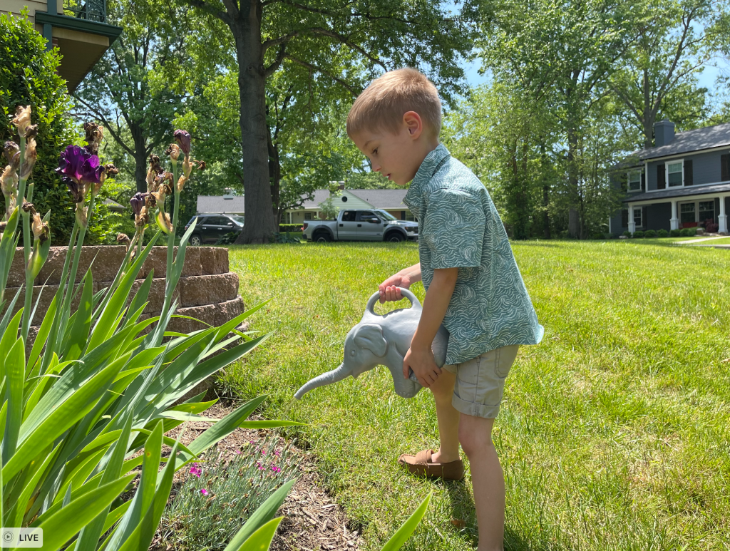 Watering the flowers (the bud’s idea) ended in filling the baby pool and drenching themselves.