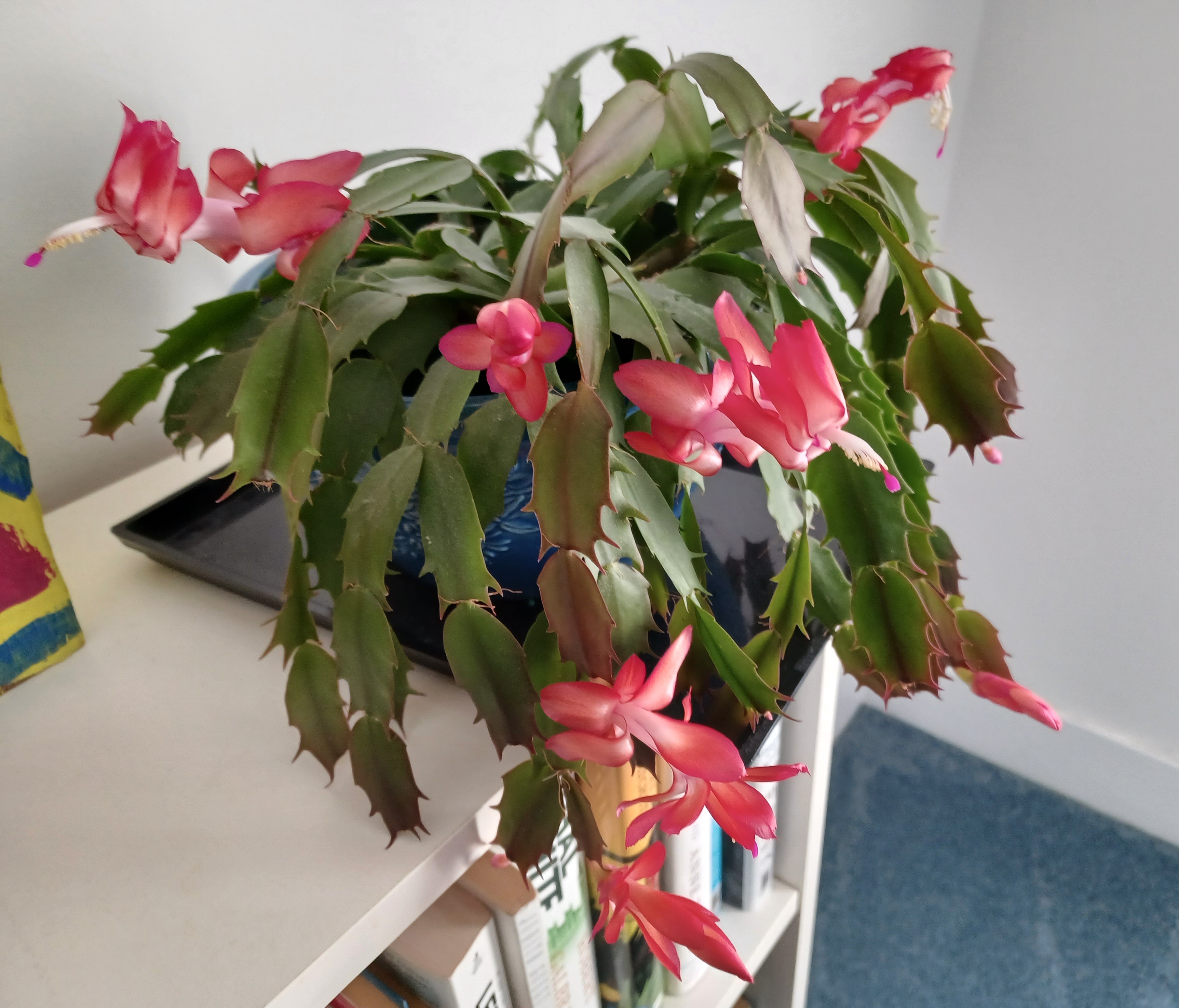 In other news, the Christmas cactus continues to bloom and more buds are developing!