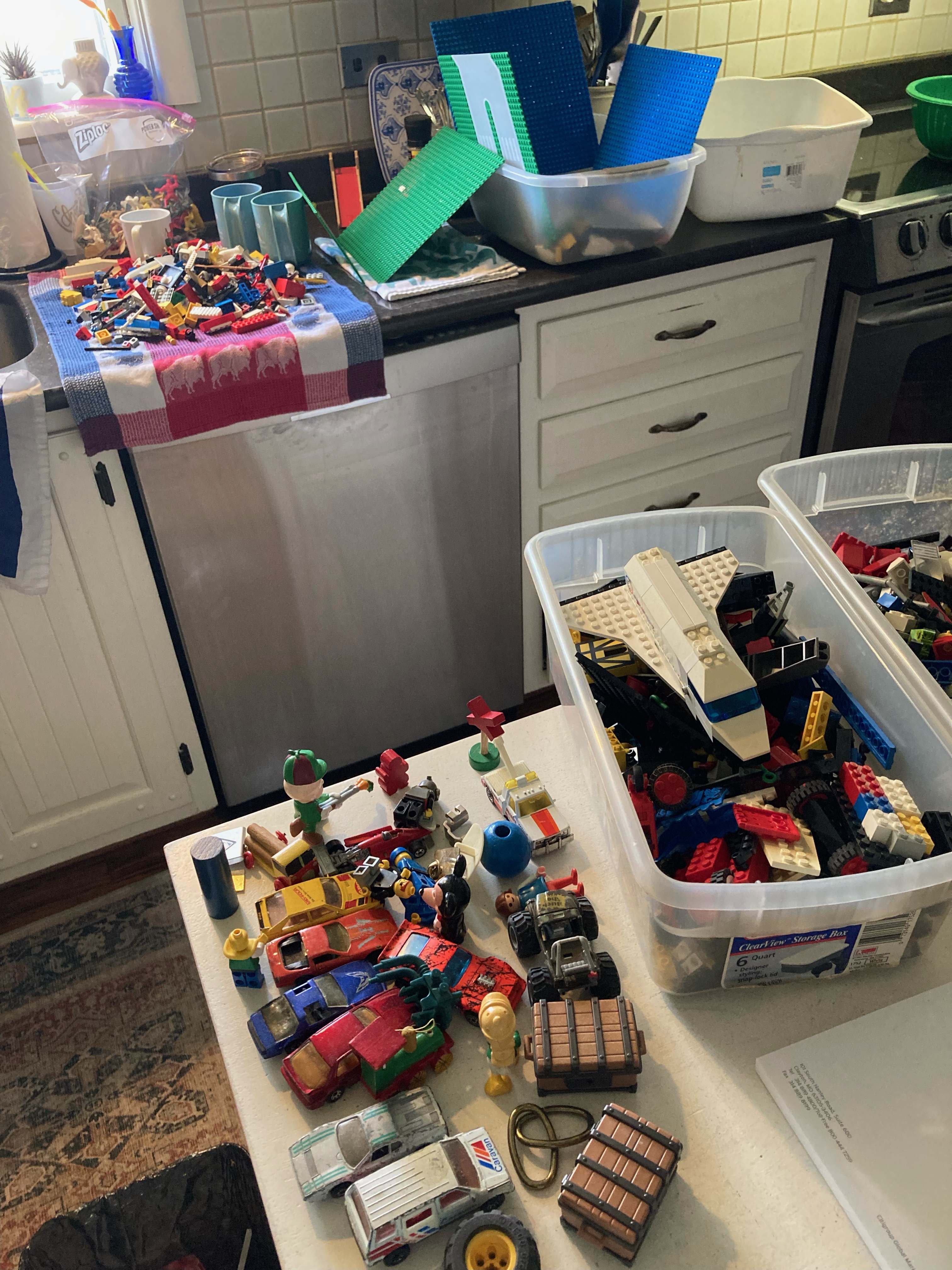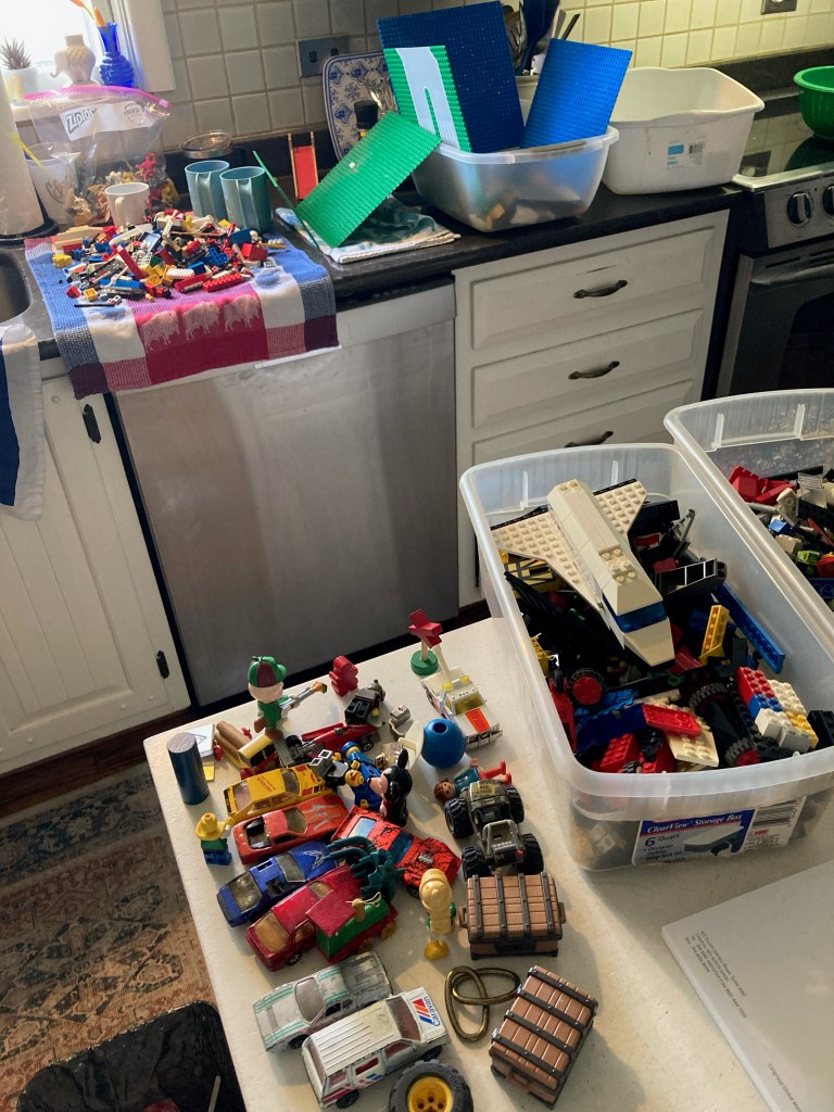 Daughter #1 drove back to town to keep me company and the boy has been, as always, supportive too. I had been planning to babysit the wee twins today and daughter #1 will take over that duty. We spent some time yesterday going through boxes of old Legos and washing them, so they can play with them today.