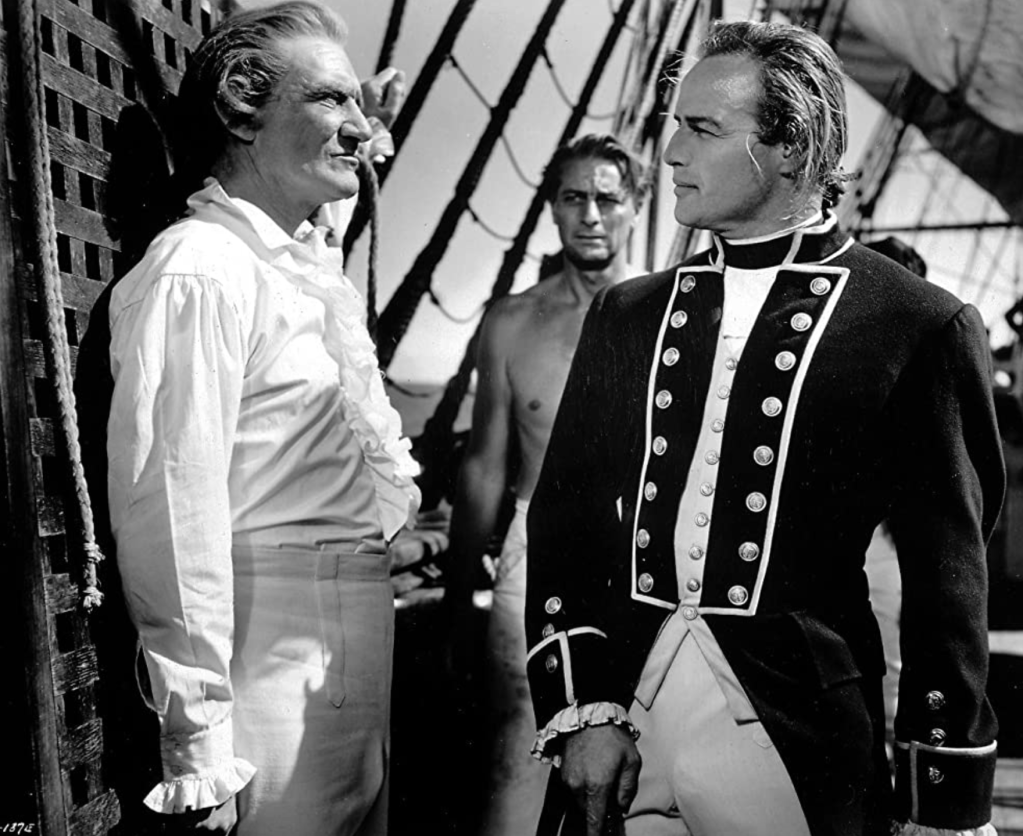 He tried to play Fletcher Christian as a man who was changed by his experience aboard the ship and he does that rather well. He is not a hero at the beginning, but he is by the end. (Contrast this with Clark Gable’s 1935 portrayal in which he is a hero from the get-go.)