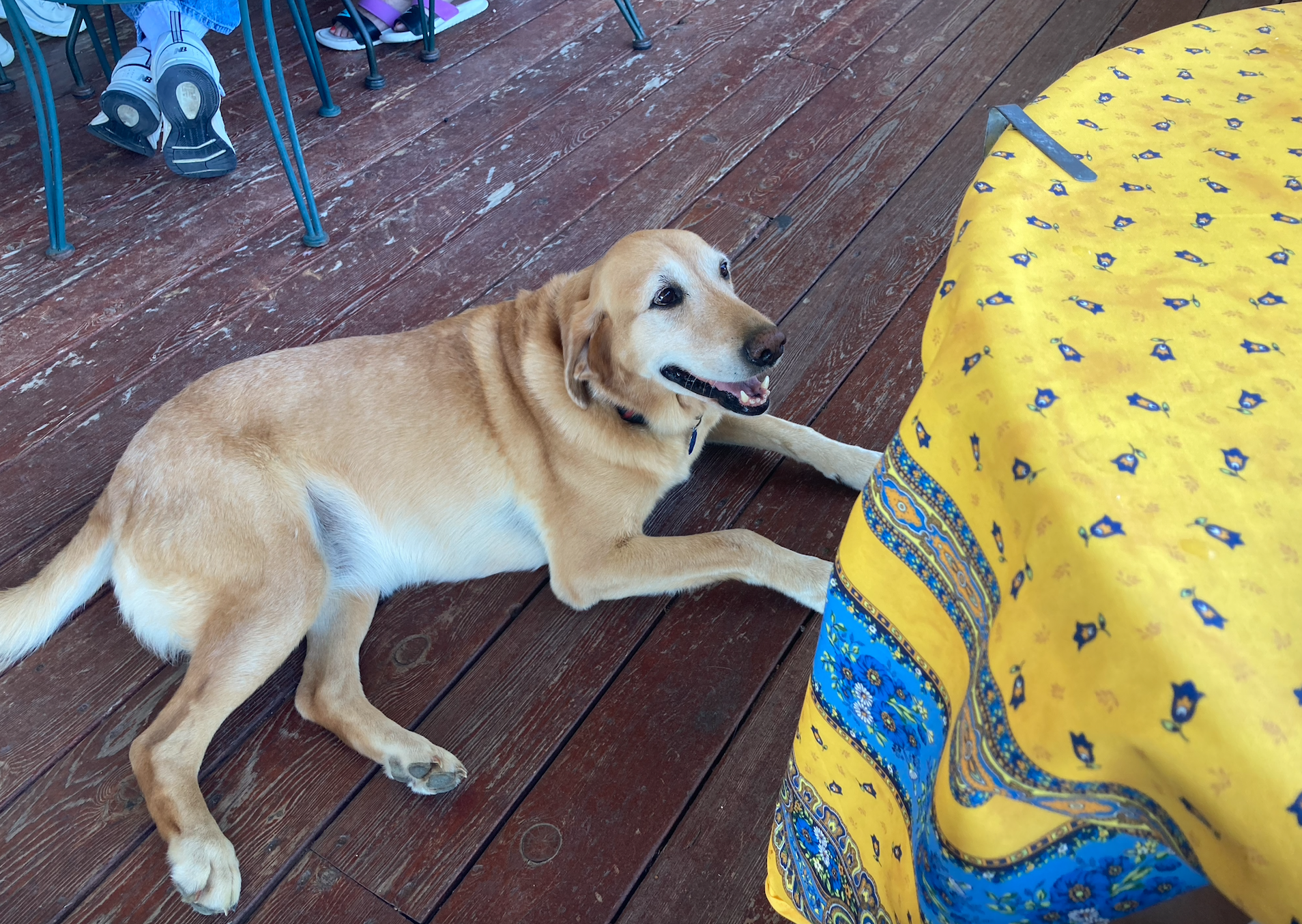 It was beautiful and the lunch was delicious! This dog came and sat with us. We didn’t mind.