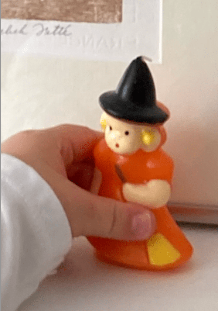 Our hope is that wee Katiebelle will wear the witch costume this year. It would please her great-grandmother. (Adorable pictures to follow, since–glory be–I found the costume!…)