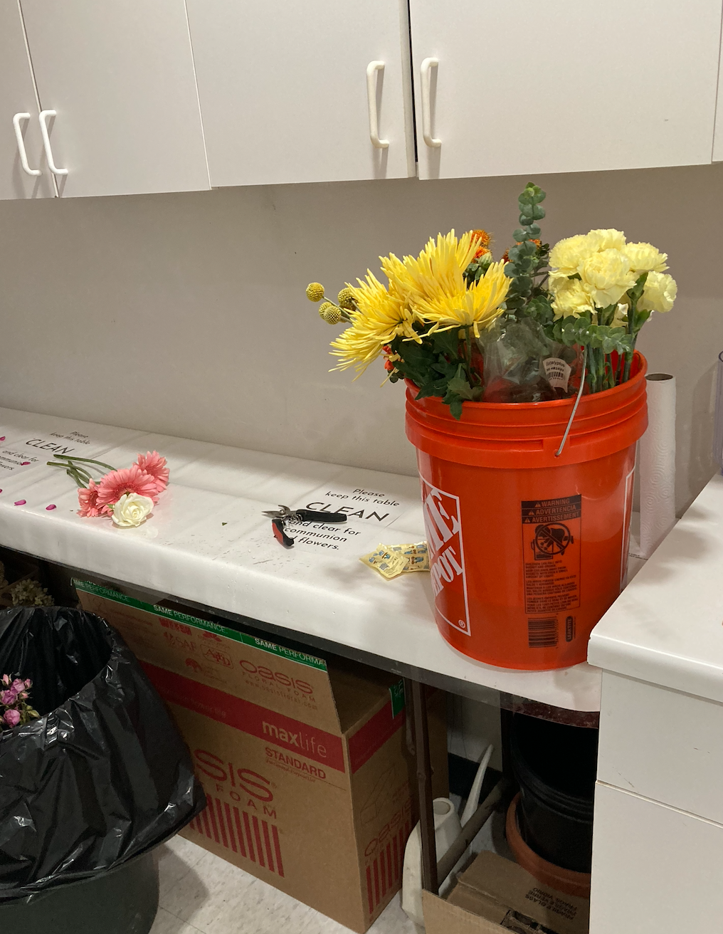 How was your weekend? Mine was a quiet one, mostly because I am still fighting this cold. I managed to “do” the flowers for church on Sunday–my maiden solo voyage so to speak and I was pleased with the result. I went to Trader Joe’s early on Saturday morning and bought a bunch of different flowers and then went to church, going in with my key and setting up in the sacristy…