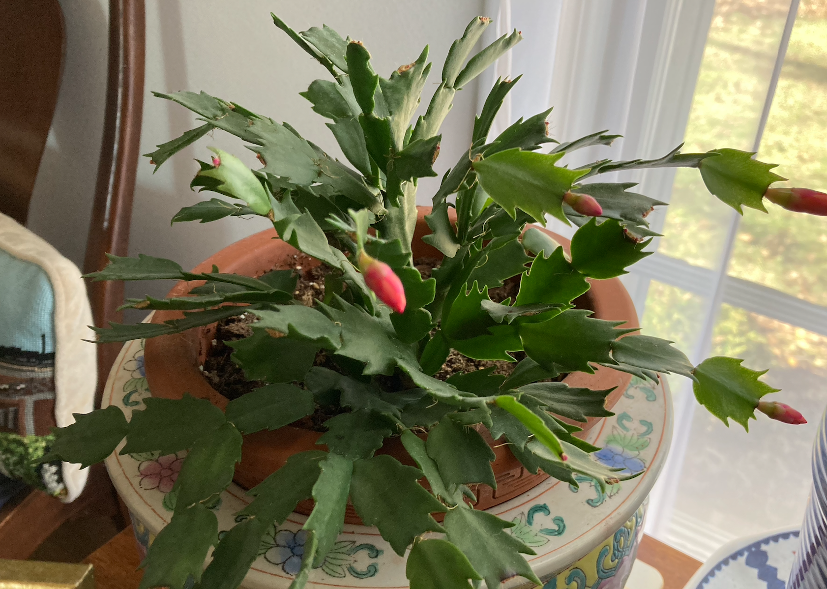 All three of my Christmas Cactus plants are blooming/budding, which I think is pretty darn neat.
