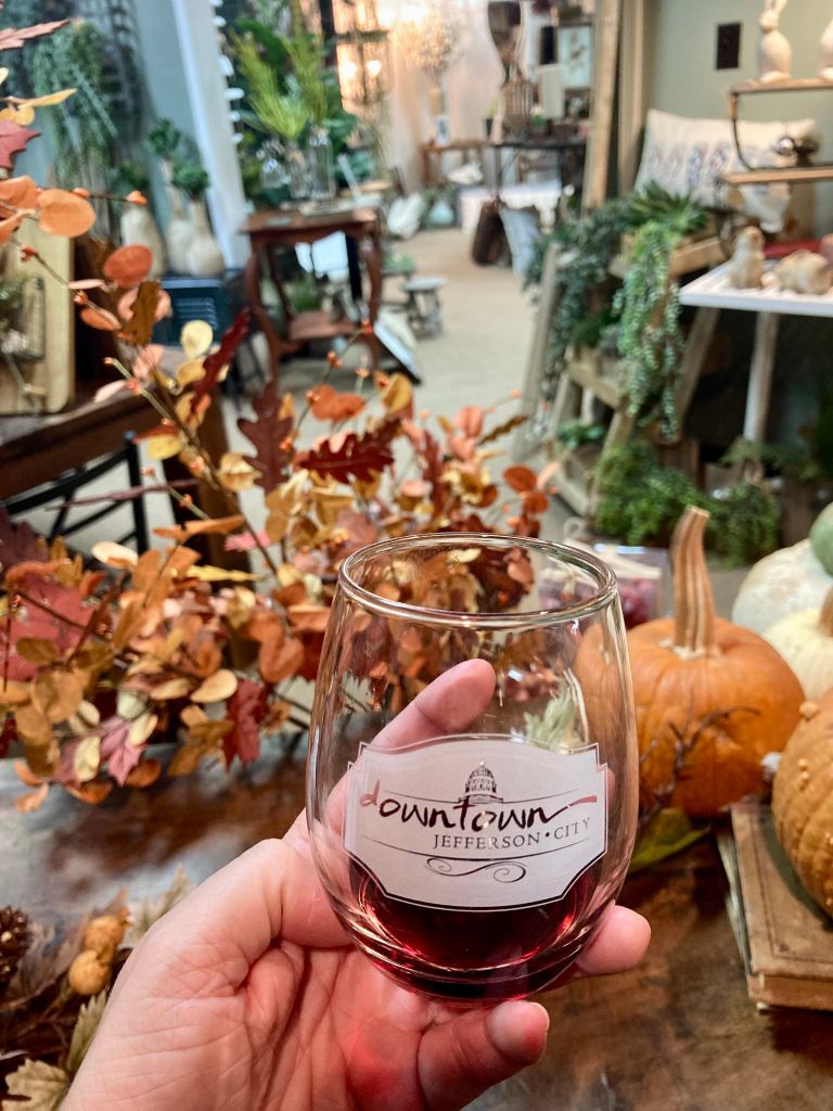 That evening, Downtown Jefferson City was aflutter for the Sip and Shop during which you purchased a ticket (aka a wine glass) and visited our little stores and sampled wine from the region while getting ahead on Christmas shopping.