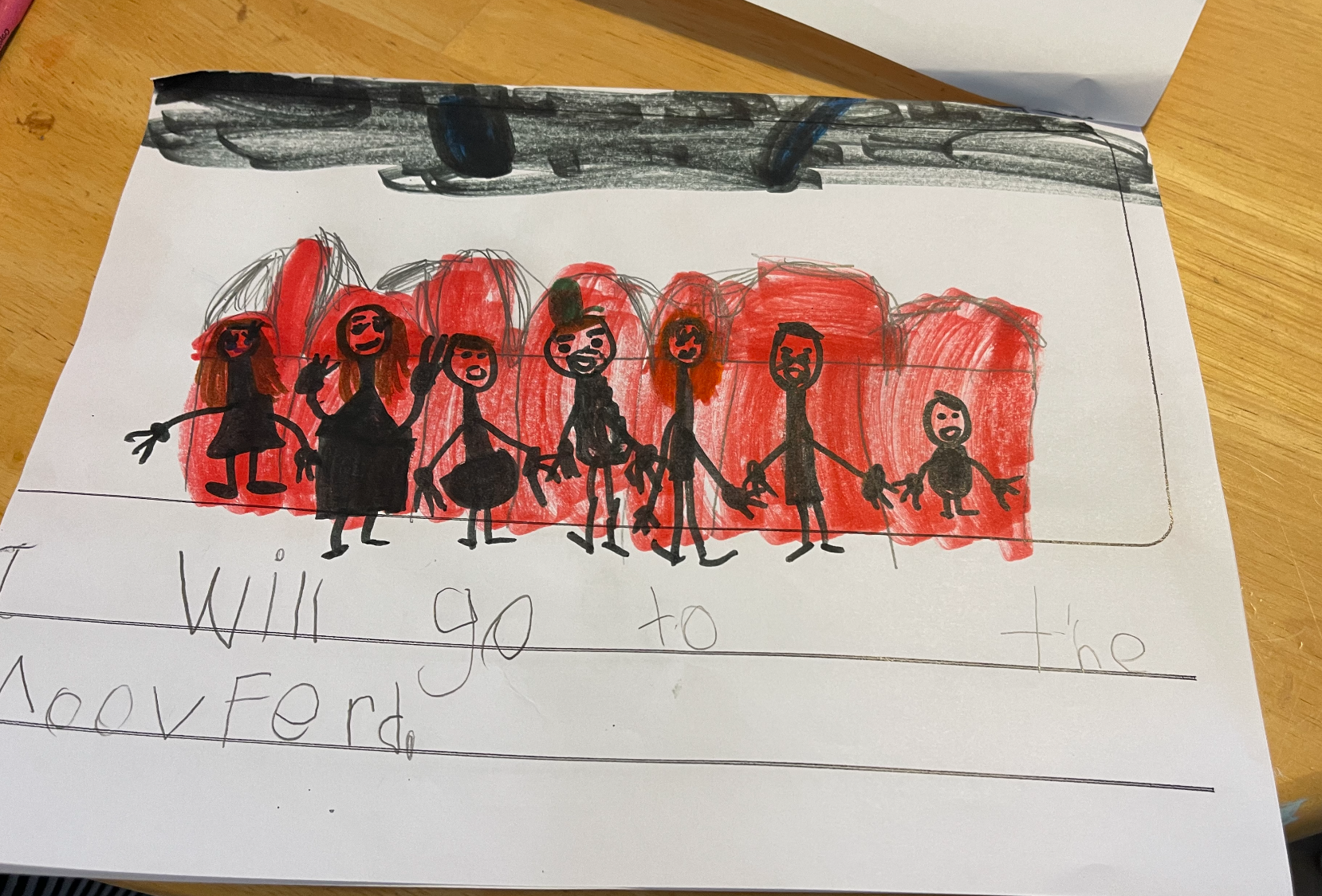 Lottie drew a picture of going to the movies–she even got the red leather recliner seats right!