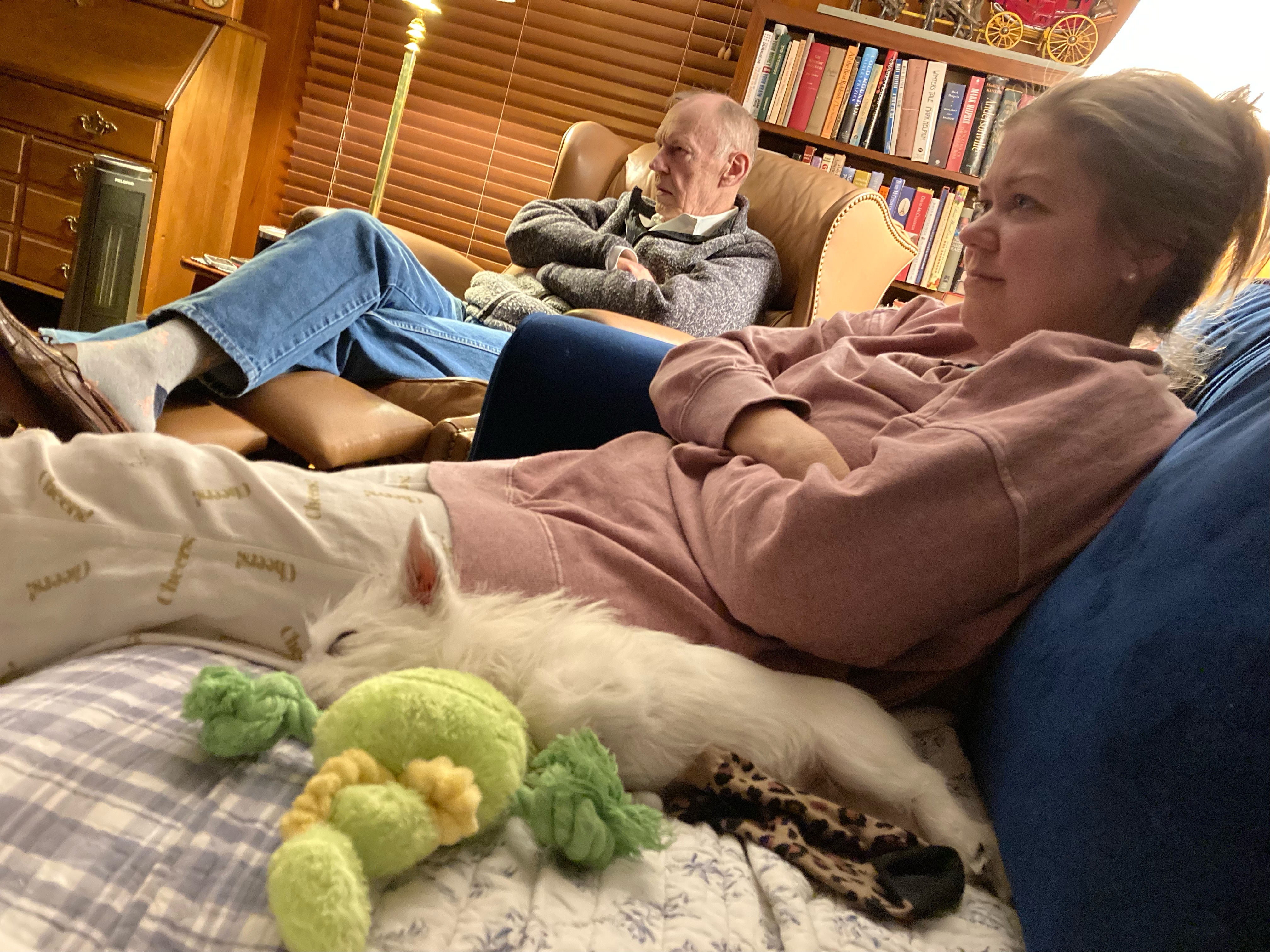 We were exhausted when we got home so we collapsed and watched some TV–Mr. Smith is a big fan of Eddie on Frasier.