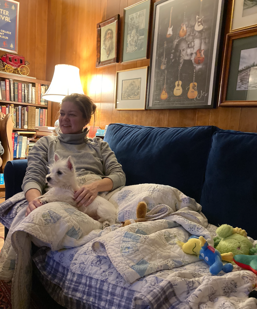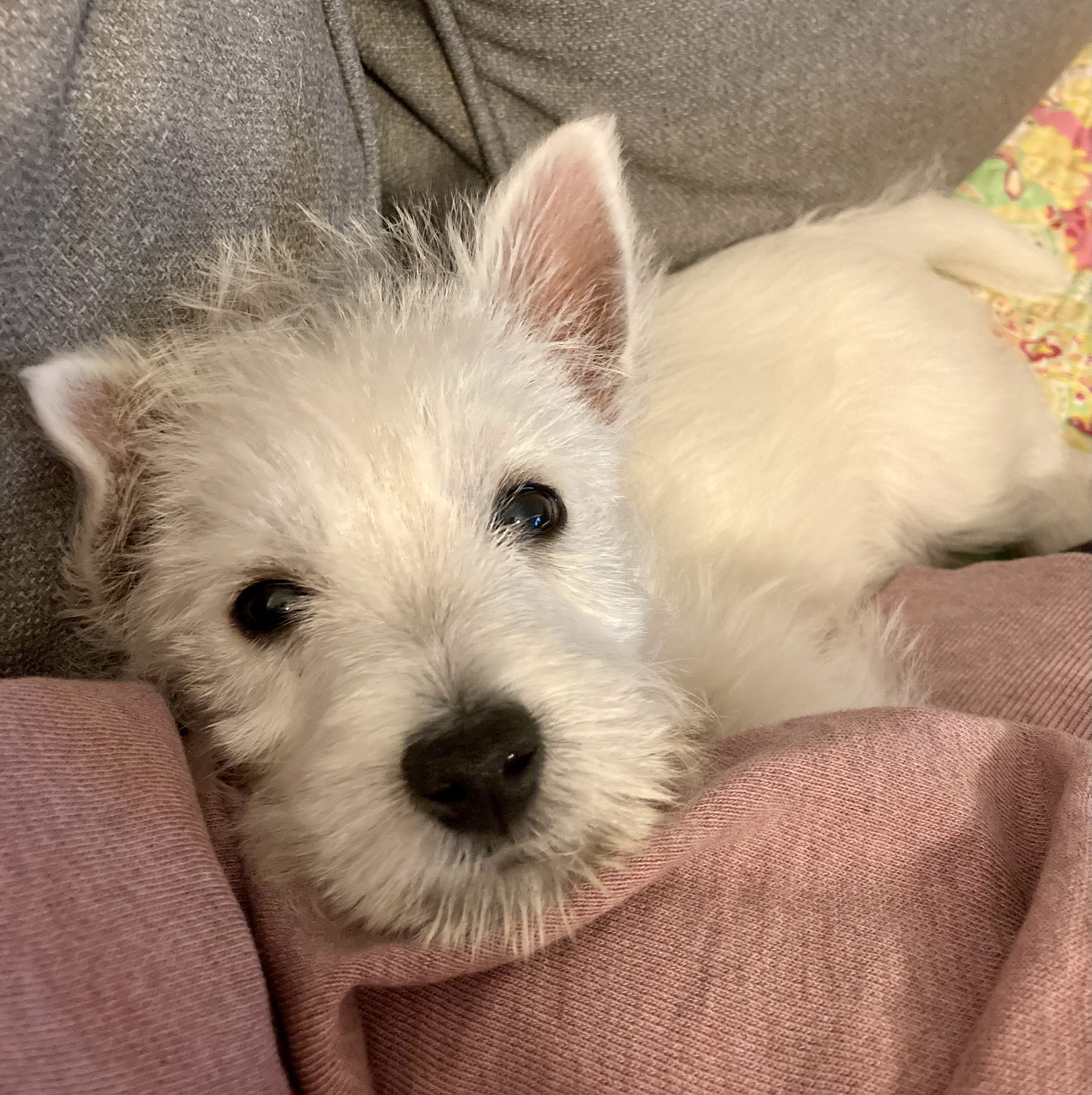 Meanwhile the wee dog is becoming acclimated to car rides and short stays at our house, not to mention watching John Wayne movies.