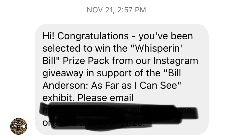 Well, amidst the excitement of the holidays, another very exciting thing happened recently. I received this DM on Instagram from the Country Music Hall of Fame.