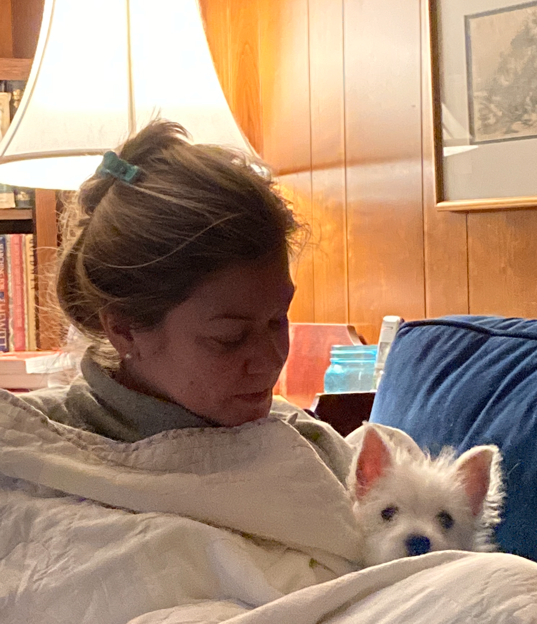 At church I noticed that I am finally able to sing without setting off a coughing fit. Finally. But both daughters are sick as is precious Katiebelle who I hear is watching A Charlie Brown Christmas on demand. “More Snoopy!”
