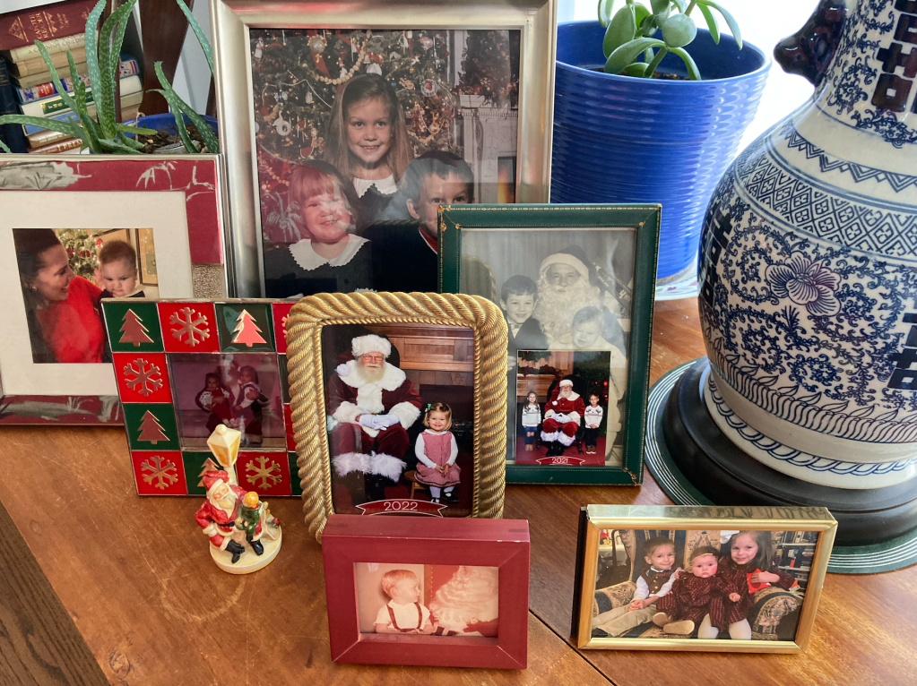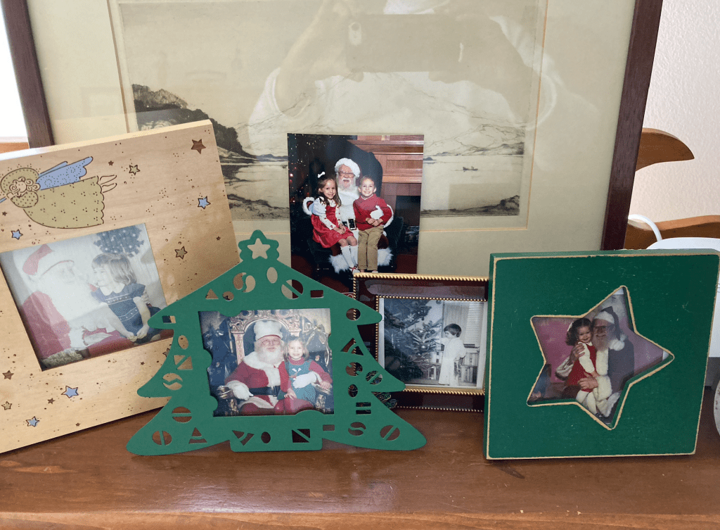 I got out all the framed Christmas pictures of visits to see Santa past and present…
