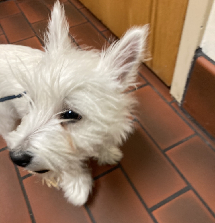 At the vet, they use cheese whiz to distract puppies while they get their shots. Here is Mr. Smith sporting quite the cheese whiz beard.