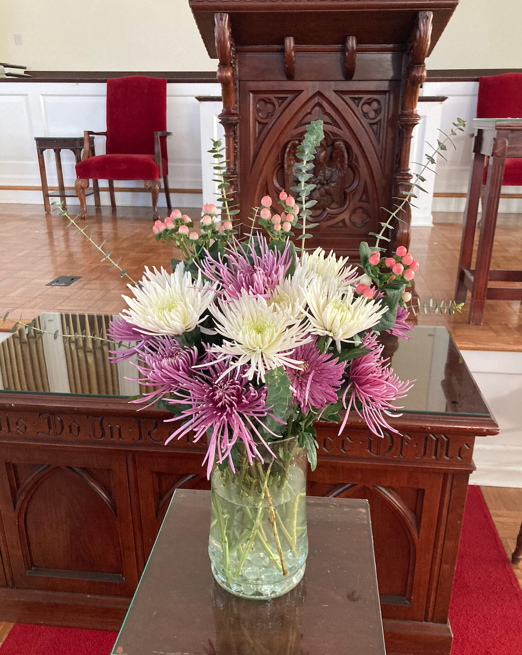 (My latest floral arrangement for church on Sunday–not bad, right?)
