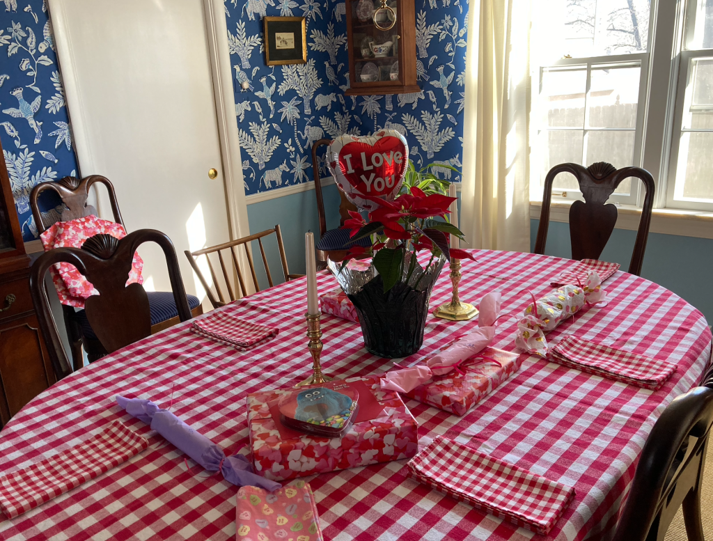 On Sunday morning I set up the dining room for a little after-church Valentine party for the wee twins…