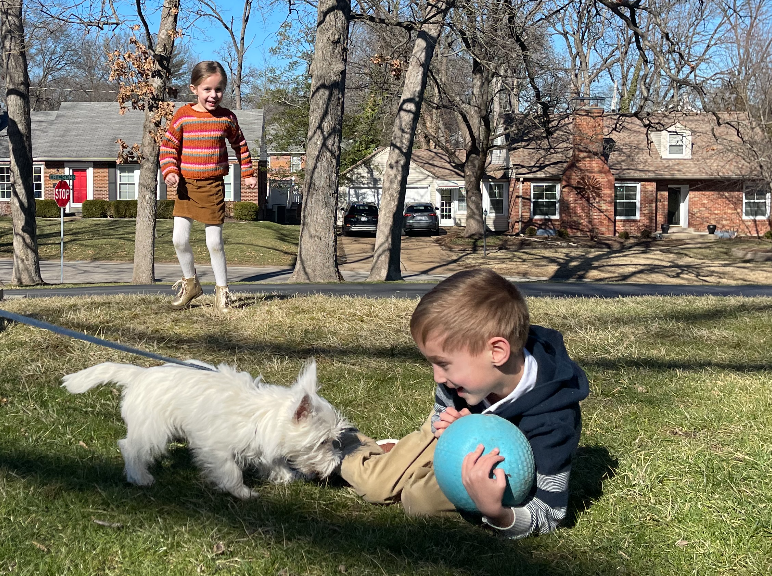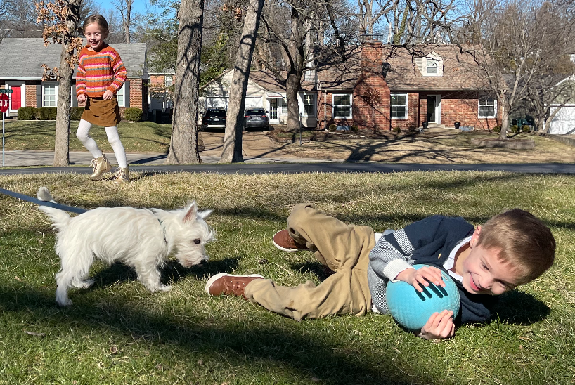 Later at home, after bagels and party favors, we played outside with Mr. Smith who is living his best life.