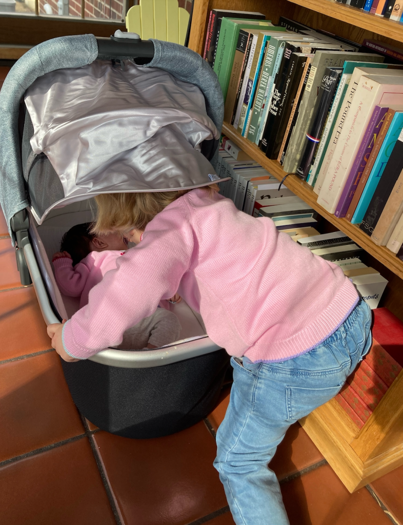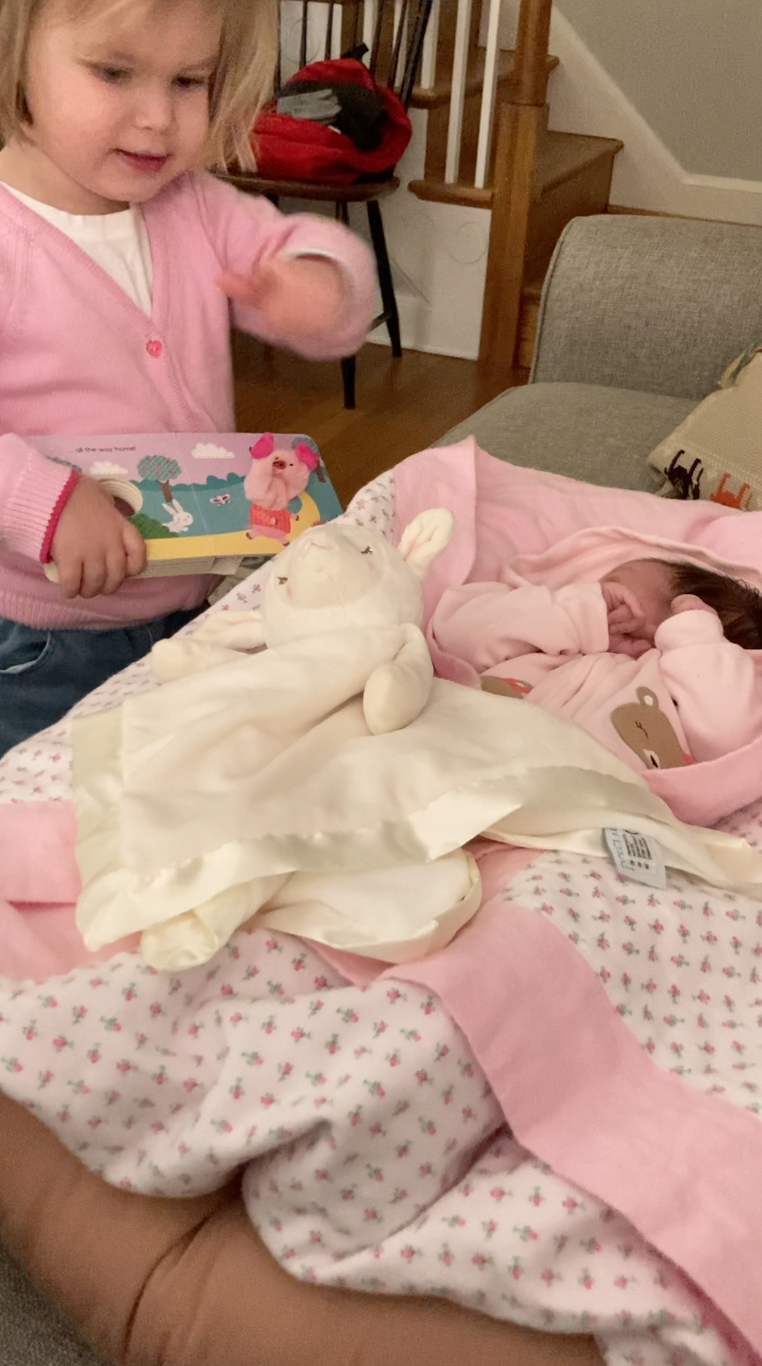 …and Katie continues to be the best big sister, reading to her constantly…
