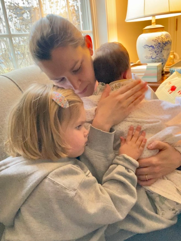 Katie is such a good big sister and loves to help her mommy gently burp Baby Ida.