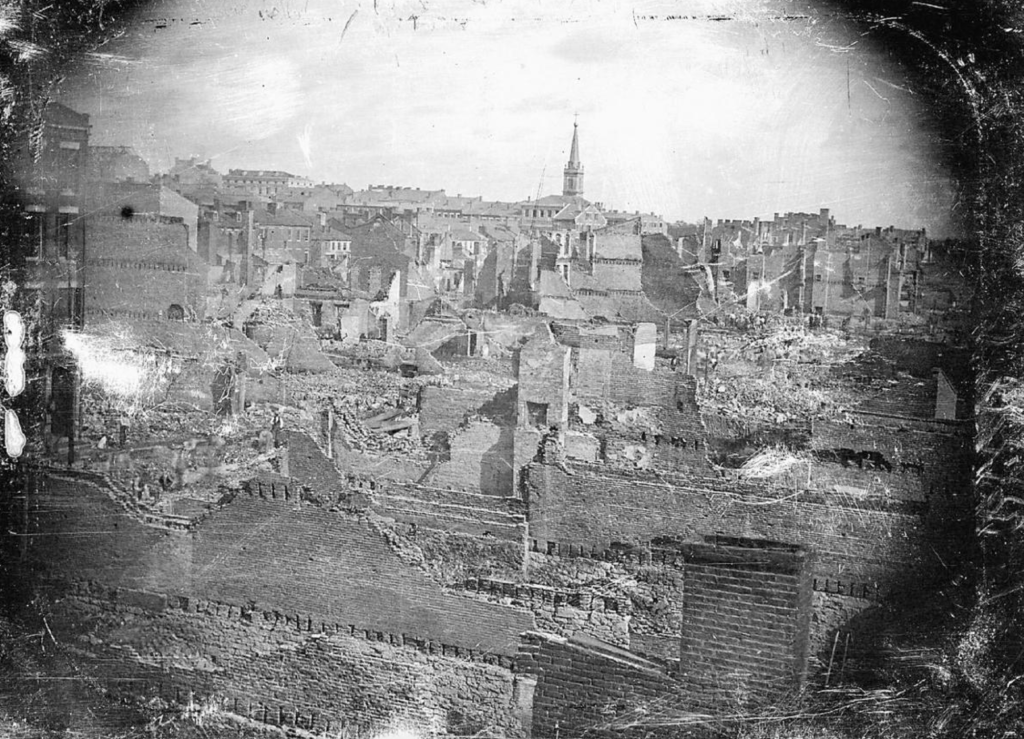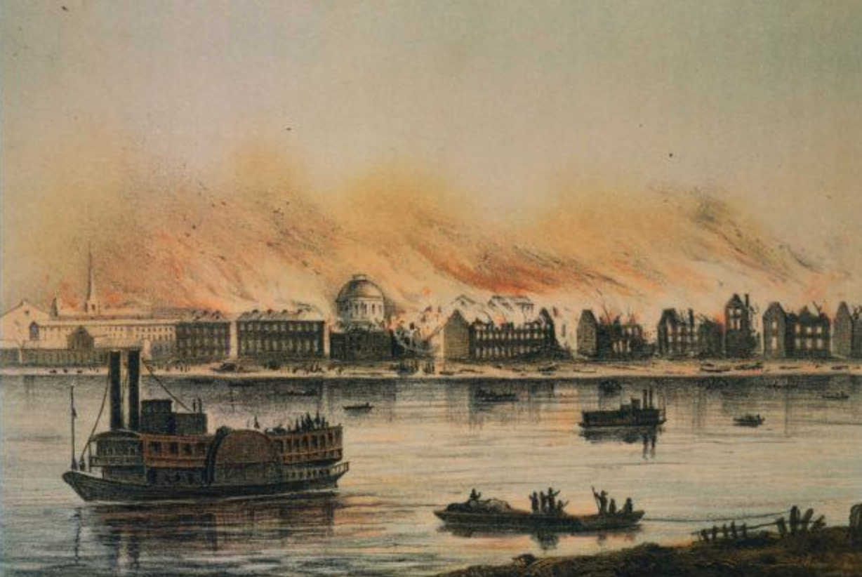 Today is the 174th anniversary of the great fire which pretty much destroyed the St. Louis waterfront–levee, wharf and business section–back in 1849. Fifteen blocks became engulfed in the firestorm. Can you even imagine?