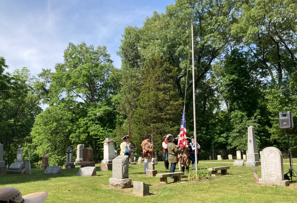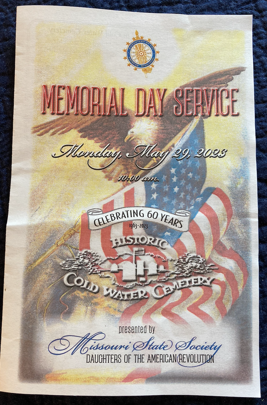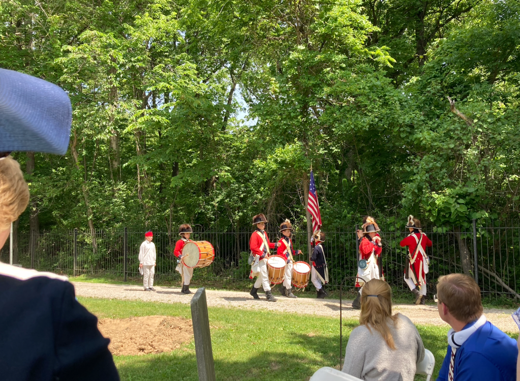 Yesterday morning I got up bright and early and drove with daughter #1 to Florissant, MO to the historic Cold Water Cemetery, the oldest Protestant cemetery west of the Mississippi still in use, for an annual DAR event. There are some Revolutionary War veterans buried in this cemetery, so the DAR has been caretaking the cemetery for 60 years. We enjoyed the ceremony, especially the Lewis and Clark Fife and Drum Corps…
