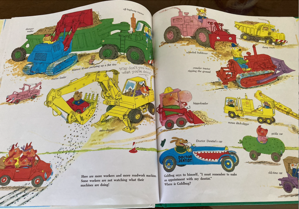 On Monday Lottie’s parents took her to the orthopedist to have her cast put on, so they dropped the wee laddie off at my house. We had so much fun together. We read Richard Scarry books, taking turns reading.