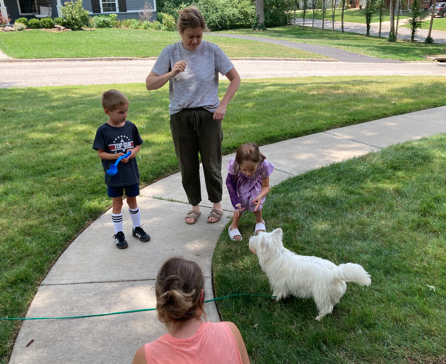 Before they left early Saturday morning, daughter #3 brought the wee twins over after soccer camp on Friday to have lunch and hang out with Mr. Smith.