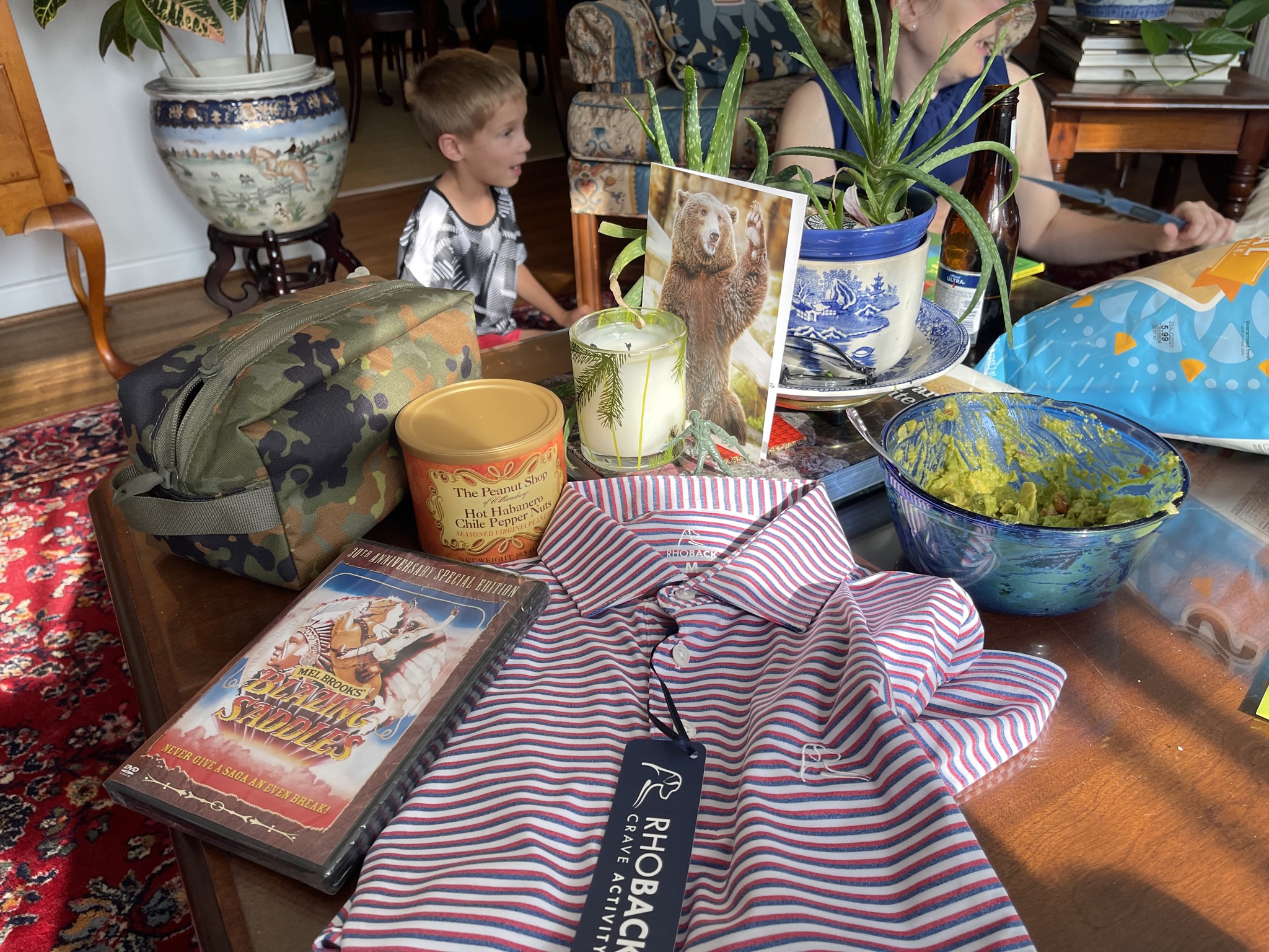 We celebrated the OM’s birthday later on Sunday when everyone came over for a barbecue and party. (Even Mr. Smith)