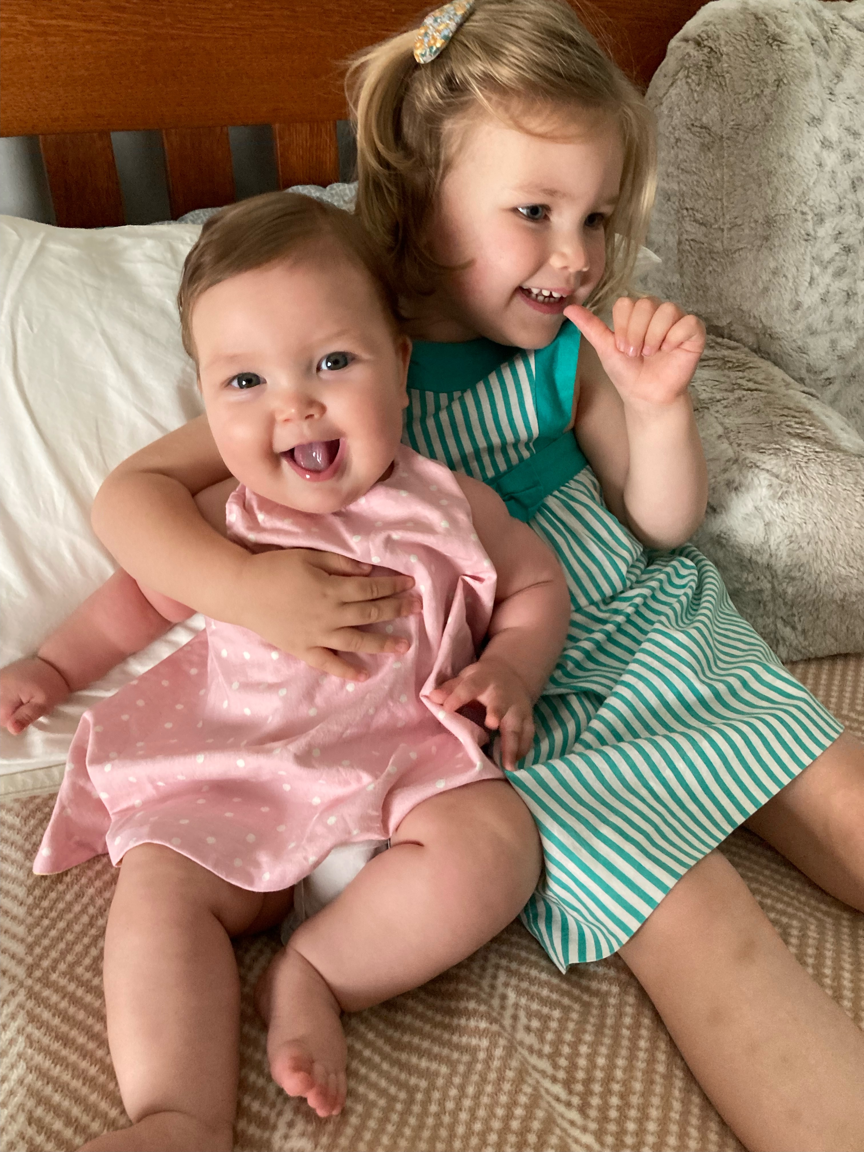 Here is a vintage photo of my DP (on top) and me (middle, right) with our cousins at their house on Lake Damariscotta in Maine, circa 1964. I don’t know where my brother is–off fishing with Bunker? Our Uncle George is in the back, holding up the pyramid. We had super fun that summer as you can imagine.