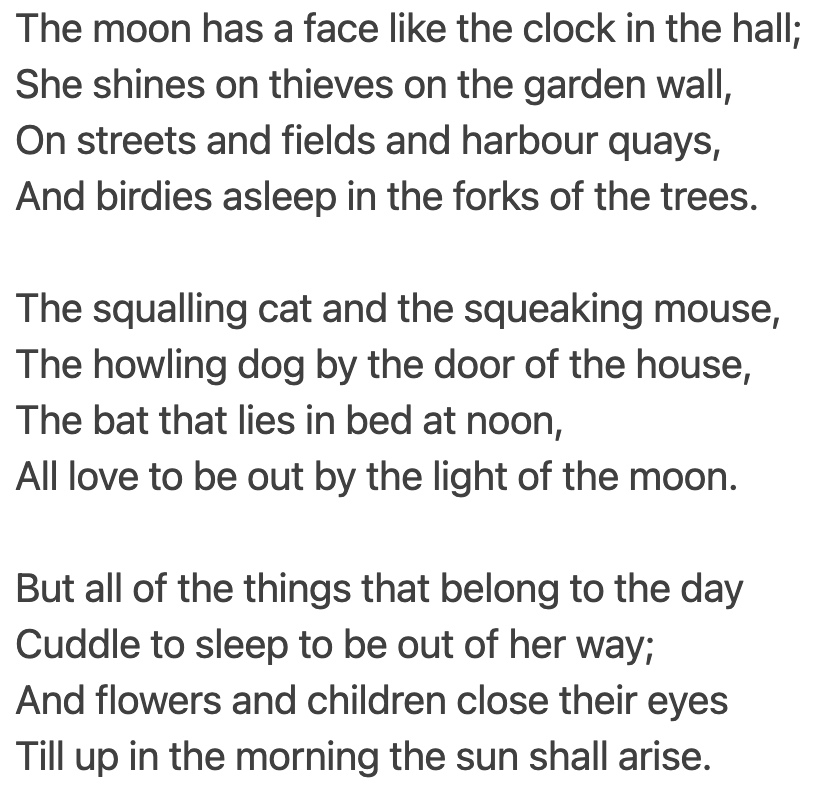 And here’s a poem about the moon by Robert Louis Stevenson: