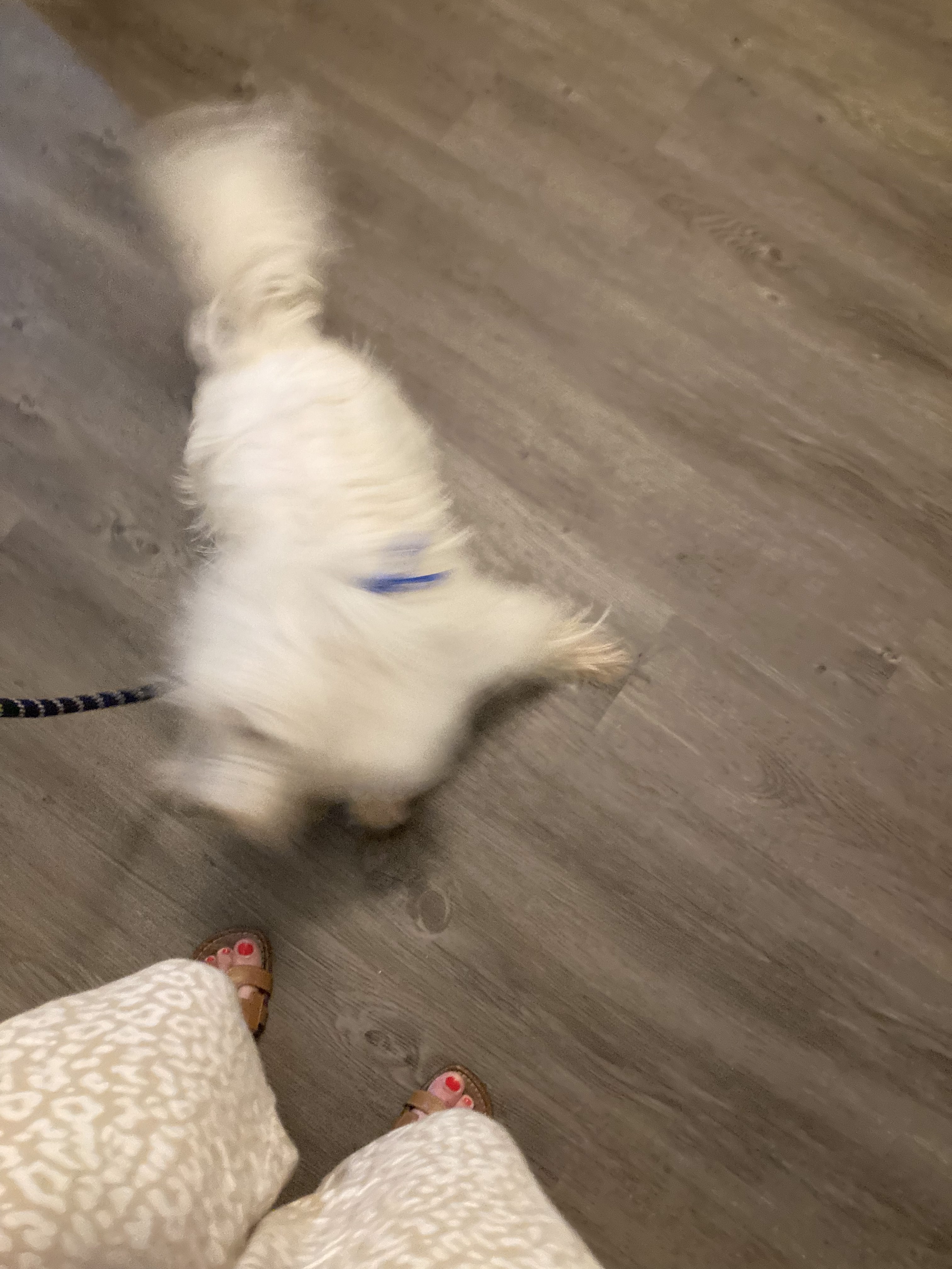 He continues to make friends with everyone we meet on our walks–except for a beagle that he cannot tolerate. The poor beagle gets a low growl or full bark whenever he passes the house or they meet on the street. Guess Mr. Smith will not be a Snoopy fan. And because he’s just so cute, here’s a gif of him continuing to channel his inner TR.