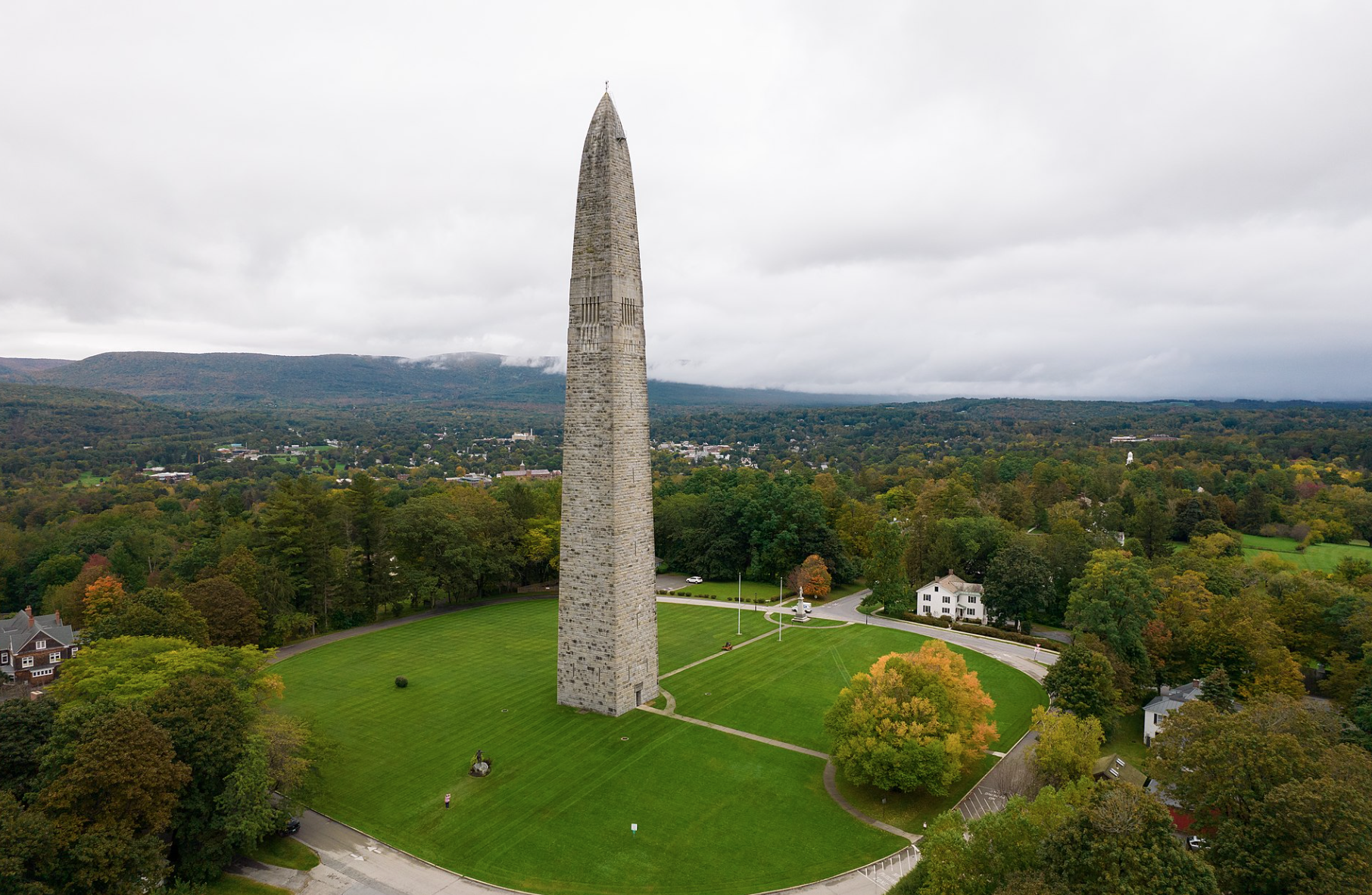 In 1877, a local historical society began to plan a monument for the battle’s centennial celebration, which was eventually attended by President Rutherford B. Hayes. The monument’s cornerstone was laid in 1887, and it was completed in November 1889 at a total cost of $112,000 (including the site). Dedication ceremonies were delayed until 1891, when President Benjamin Harrison attended the ceremonies. Statues of John Stark , Seth Warner and other notables ornament the grounds.