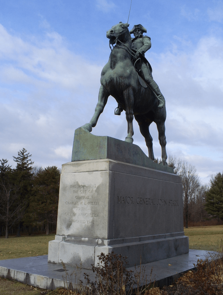 You may recall that John Stark, while hunting in 1752, was captured by Abenaki Indians, taken to Canada and made to run the gauntlet. Stark grabbed a club and attacked the Indians who were so impressed by his courage that he was adopted into the tribe. (He was later ransomed.) Stark fought through the French and Indian War as an officer in Roger’s Rangers. With the outbreak of the Revolutionary War, Stark became colonel in the New Hampshire Militia. Stark fought at the Battles of Bunker Hill, Trenton and Princeton, before returning to New Hampshire to raise more men for the Continental Army and leading the Americans at the Battle of Bennington.