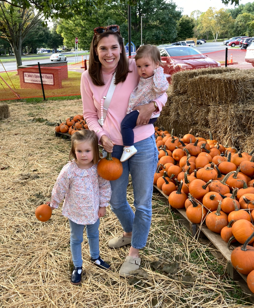 Well, I had a wonderful visit with daughter #2’s little family–the weather was perfect and we had quite an extended gabfest. We went to all the parks: green, red and blue. We went to the pumpkin patch.