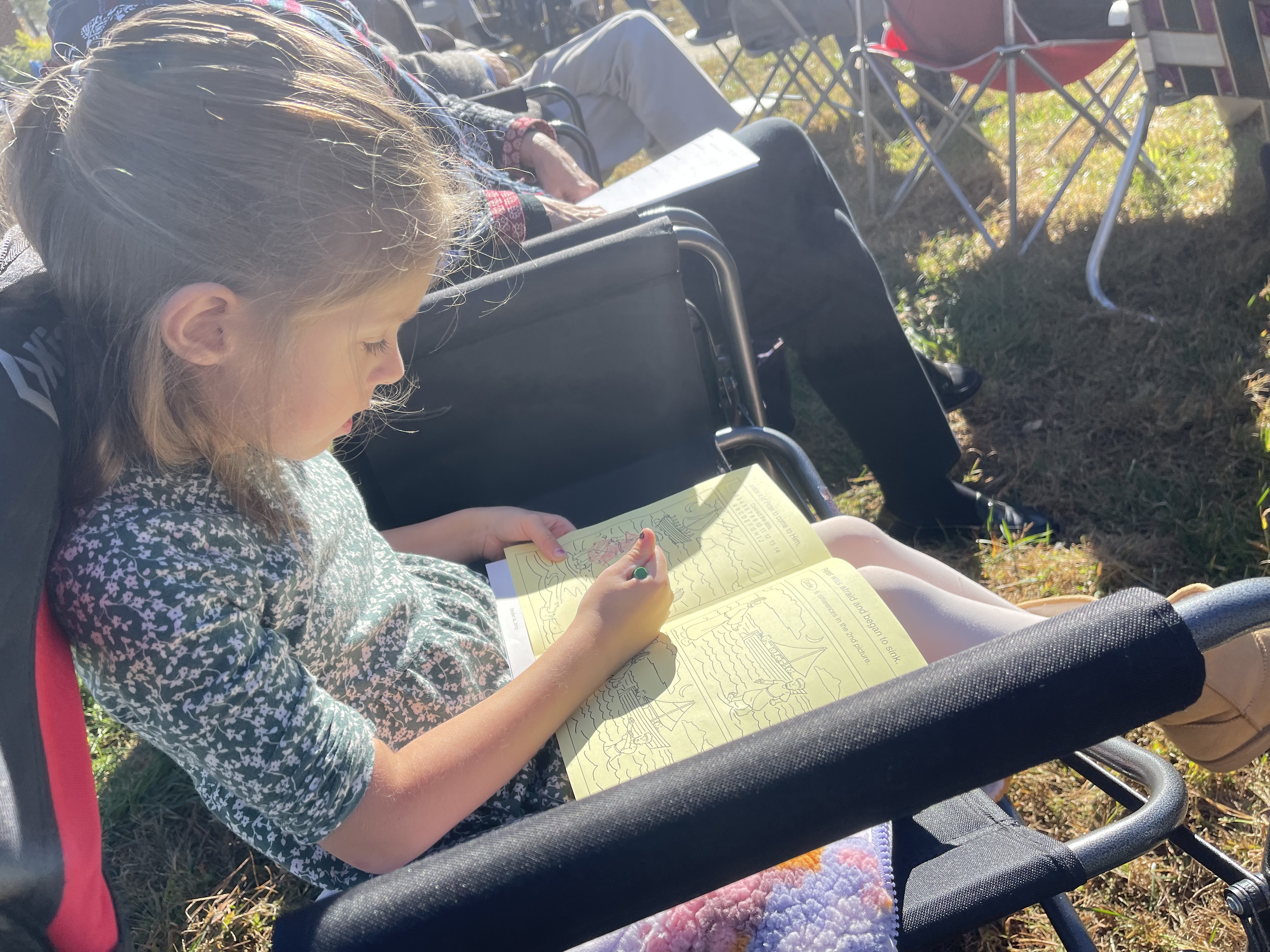 It was our usual service with music, sermon and communion–I was a doubter, but I really enjoyed sitting in lawn chairs in the beautiful sunshine.