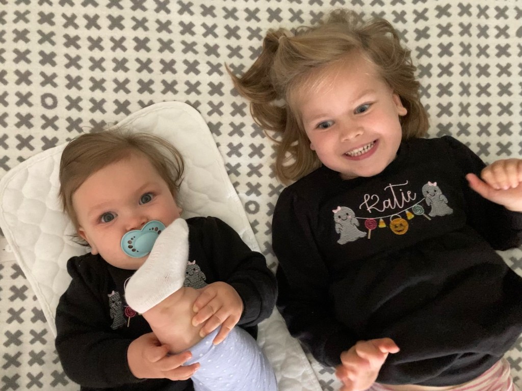 And here’s a bonus pic of Katie and Ida in their two little bees finery.