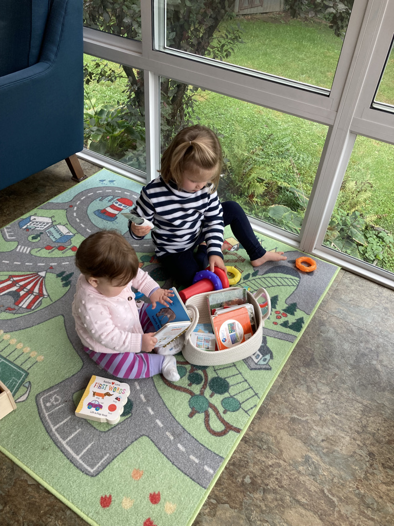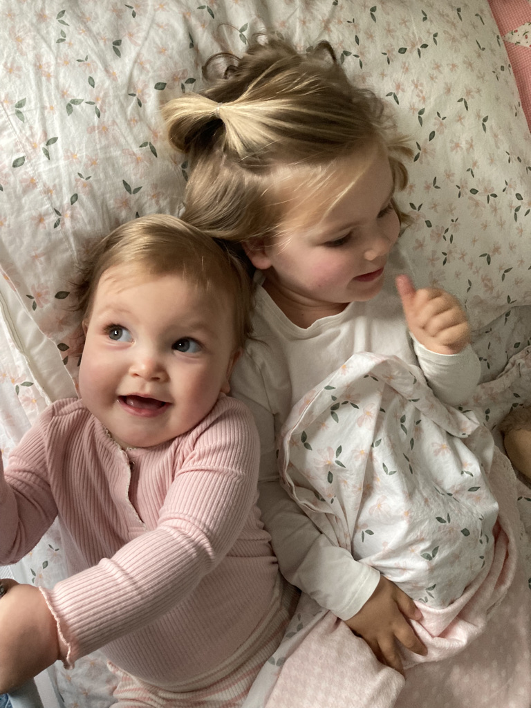 Happy Friday from daughter #2, with a little life check-in following our update a few months ago. I am happy to report that we are all still so thrilled to be at home together. Today’s happy routine was hard won — Ida did, indeed, have to relearn how to nap, and Katie had to accept that weekdays are still not weekends. For a while there, the girls only slept simultaneously for 10-20 minutes each day. Before long, though, we got into our groove: Ida takes 2 long naps a day, and Katie has an overlapping “quiet time” in the afternoon. (If she doesn’t fall asleep, she happily performs a one-woman-show of musical tunes for her stuffed animals in bed.) While I had imagined that I would need to plan capital-A Activities to keep us all occupied, that is far from true. We do chores together, we go to the park, we eat meals. We cuddle.
