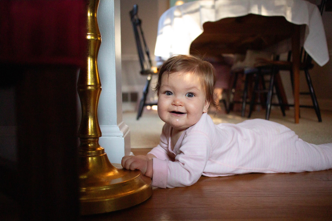 Sometimes I imagine what someone might think if they dropped into our house right in the middle of things — me, a grown woman, singing “Hands are for clapping” in complete and utter earnest; a three year old asking for a “way high boost” and executing a cheerleader’s split jump at no apparent prompting when her father lifts her in the air; two adults discussing a clock as if it is a roommate of the toddler’s with functioning eyes and a genuine sleep routine; a baby army crawling through a room and leaving a Godzilla-style wake of destruction through toys, books, and folded laundry (there’s always folded laundry out). It can be quite a scene. But it’s the best.