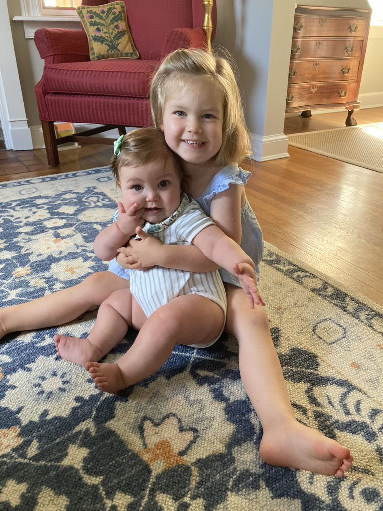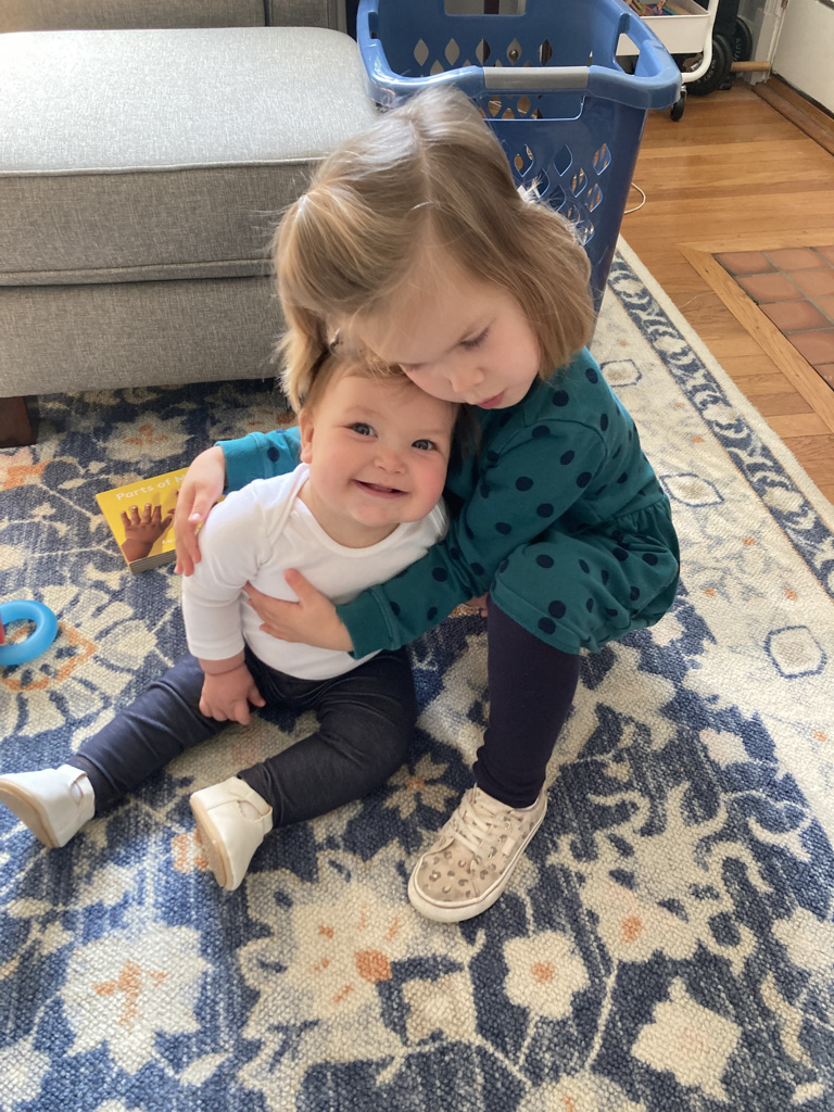 And of course, Ida receives ample care from Katie as well. She has an uncanny ability to guess which toy or teether Ida might like in a given moment (I’m serious! There are preferences at play!). She loves to hold Ida and has even, on occasion, been allowed to hold Ida while standing up — it is a sight to behold, as both sisters are grinning and also look like they must be deeply uncomfortable. And Katie loves stroking Ida’s cheeks just as much as I do, which is to say, a lot.