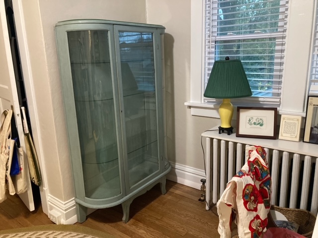 We did, however, arrange to have my large glass doll case moved from my house to daughter #1’s house and that was my major accomplishment of the weekend. Our friends in the crew at Davis Place Estate Sales obliged us and did the heavy lifting and carrying up and down several flights of stairs. I meant to take pictures, but forgot. But here it is home now in daughter #1’s craft room.