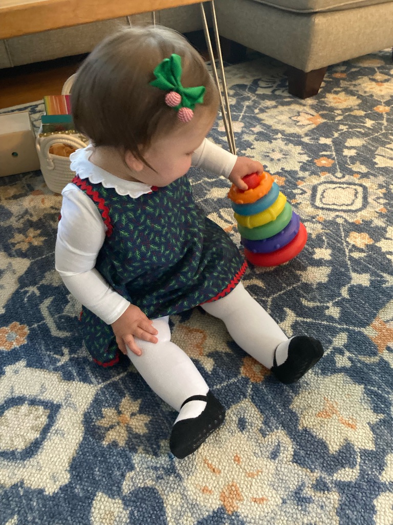 And this babydoll tried on her hand-me-down Christmas dress…