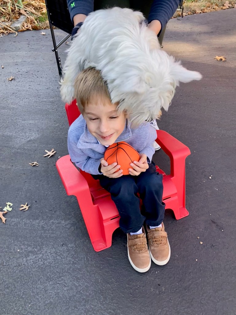 His focus was not exactly razor sharp, but he didn’t allow any goals–the other team hardly made it onto his side of the field. Yes, his team had an undefeated season! I will say the bud always seemed to have the biggest cheering section with at least seven family members in attendance (+ Lottie!). Two grandparents, two aunts, a great aunt, a great uncle, his Mom–I don’t think he even really noticed. But really, I ask, what would you rather be doing than sitting on folding chairs on a crisp fall day watching six-year olds run up and down the field?