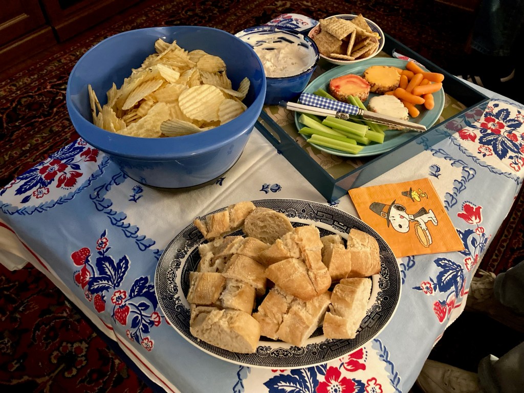Thanksgiving is just around the corner! We should rejoice and be thankful, despite our manifold sins and general wickedness, all year round, but I especially do at this time of year. As always, it is the little things that stand out for me, such as the chip fest we enjoyed on Saturday night when the boy dropped off Lottie while the wee bud went to a birthday party. (Their Mom was in Dallas this weekend.)