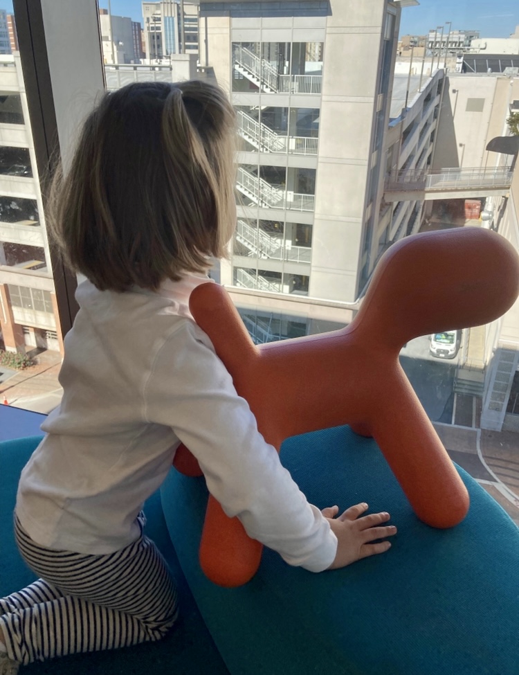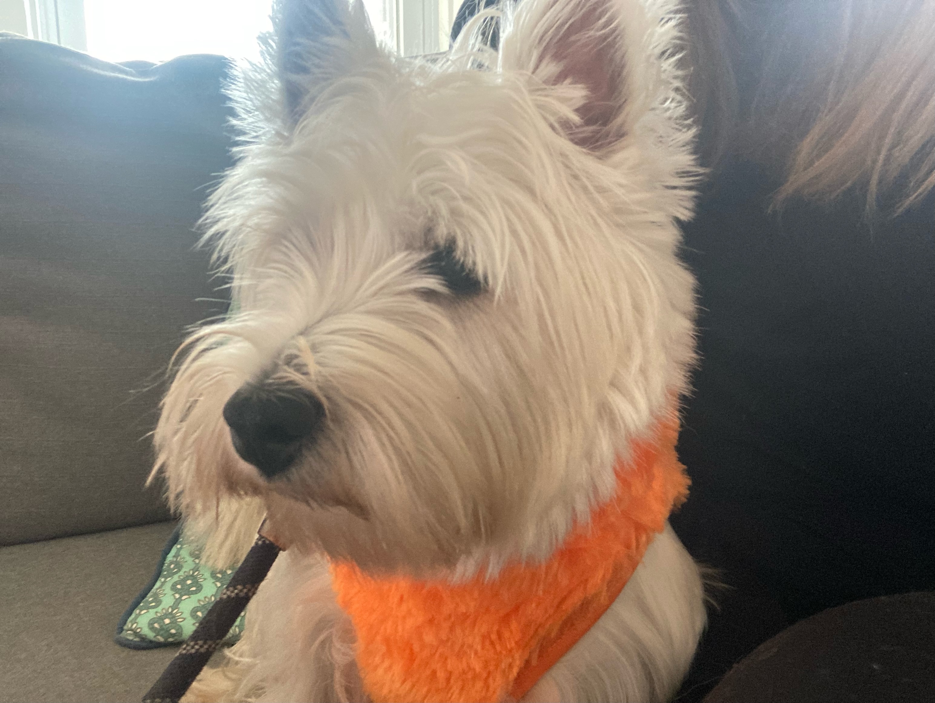 Today, I let him have free rein of the living room while I worked from home in my upstairs office. He was slightly confused but also entertained himself well by keeping watch out the window. He only interrupted one Zoom call when he melted down over a squirrel on the porch. I mean, it’s good to have security.