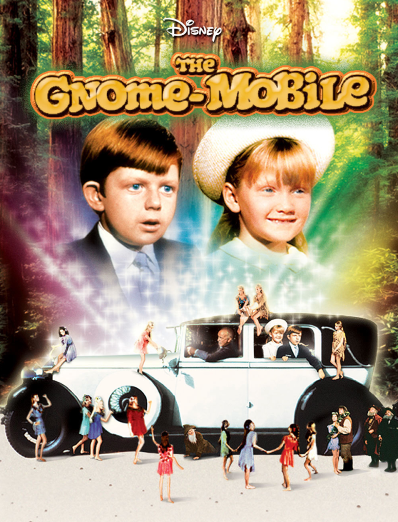 Daughter #1 and Mr. Smith joined the OM and Lottie and me to watch The Gnome-Mobile (1967)–a vintage Disney film in which a multi-millionaire lumberman (Walter Brennan) and his two young grandchildren (played by the kids from Mary Poppins) encounter two gnomes in the Redwood forest of California who are supposedly the last of their kind. Hilarity ensues. Although there is no princess in this film, I think Lottie enjoyed it. At least now she knows what a gnome is.