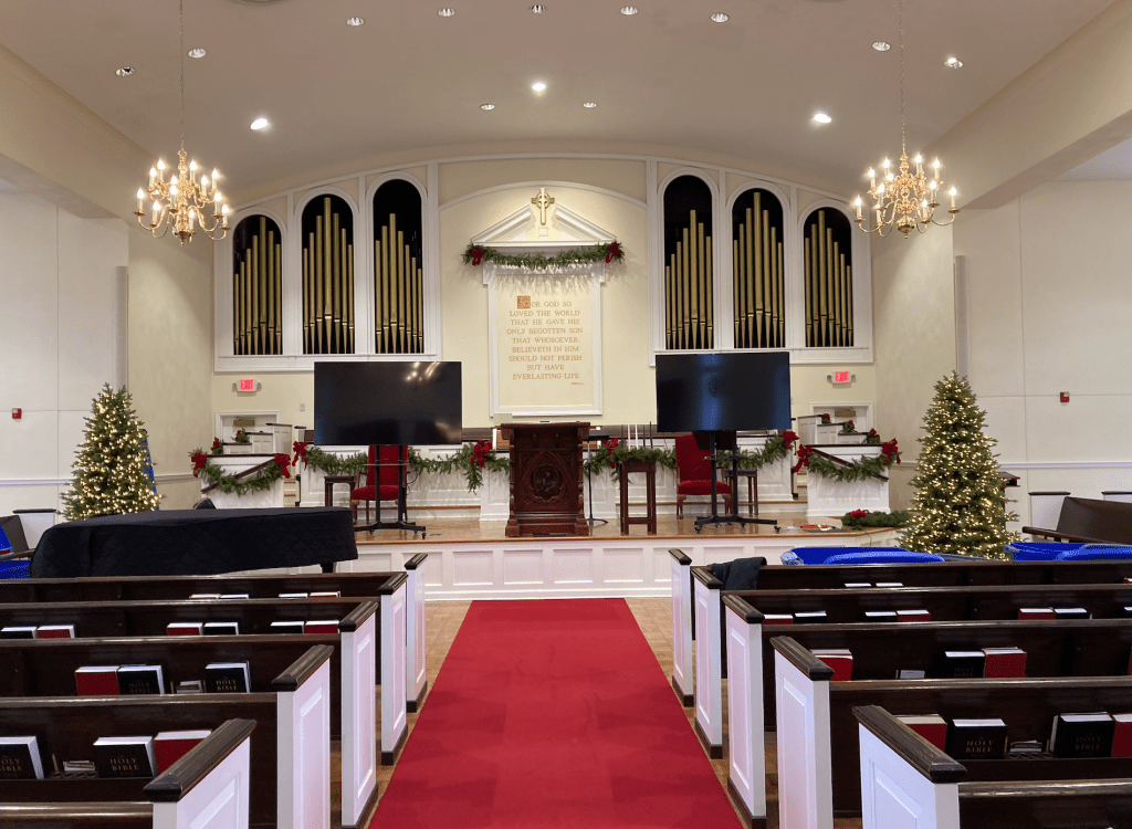 So pretty and understated. (The TV screens are not usually there. We had a presentation earlier in the week about our senior pastor candidate.)