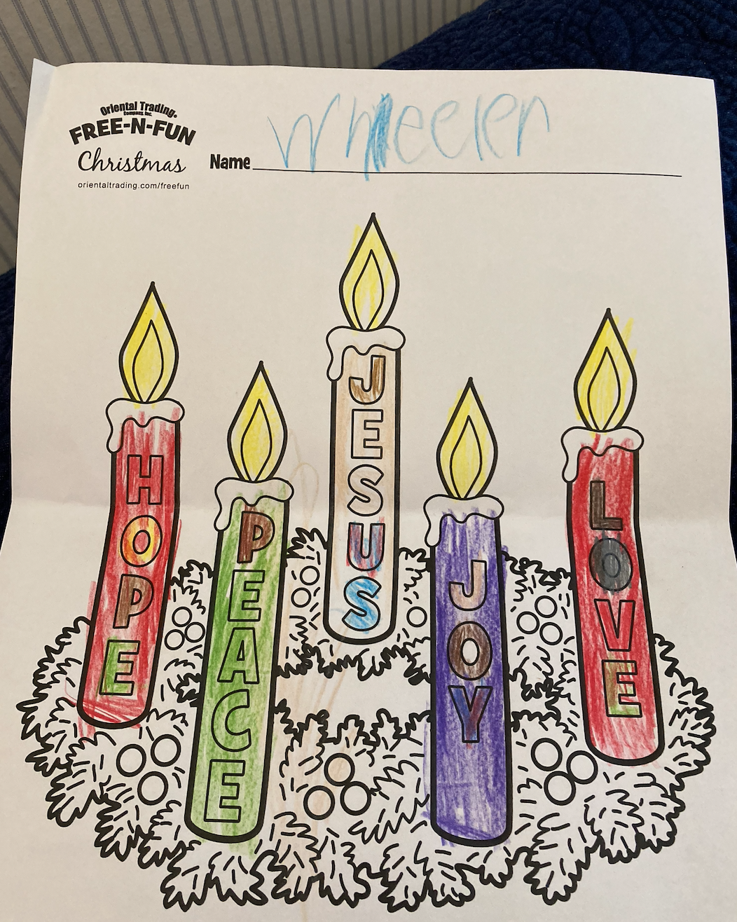 We also had an Advent craft event in between services instead of Sunday School. Lottie is a real crafter and she hunkered right down and made some outlandishly garish Advent decorations.