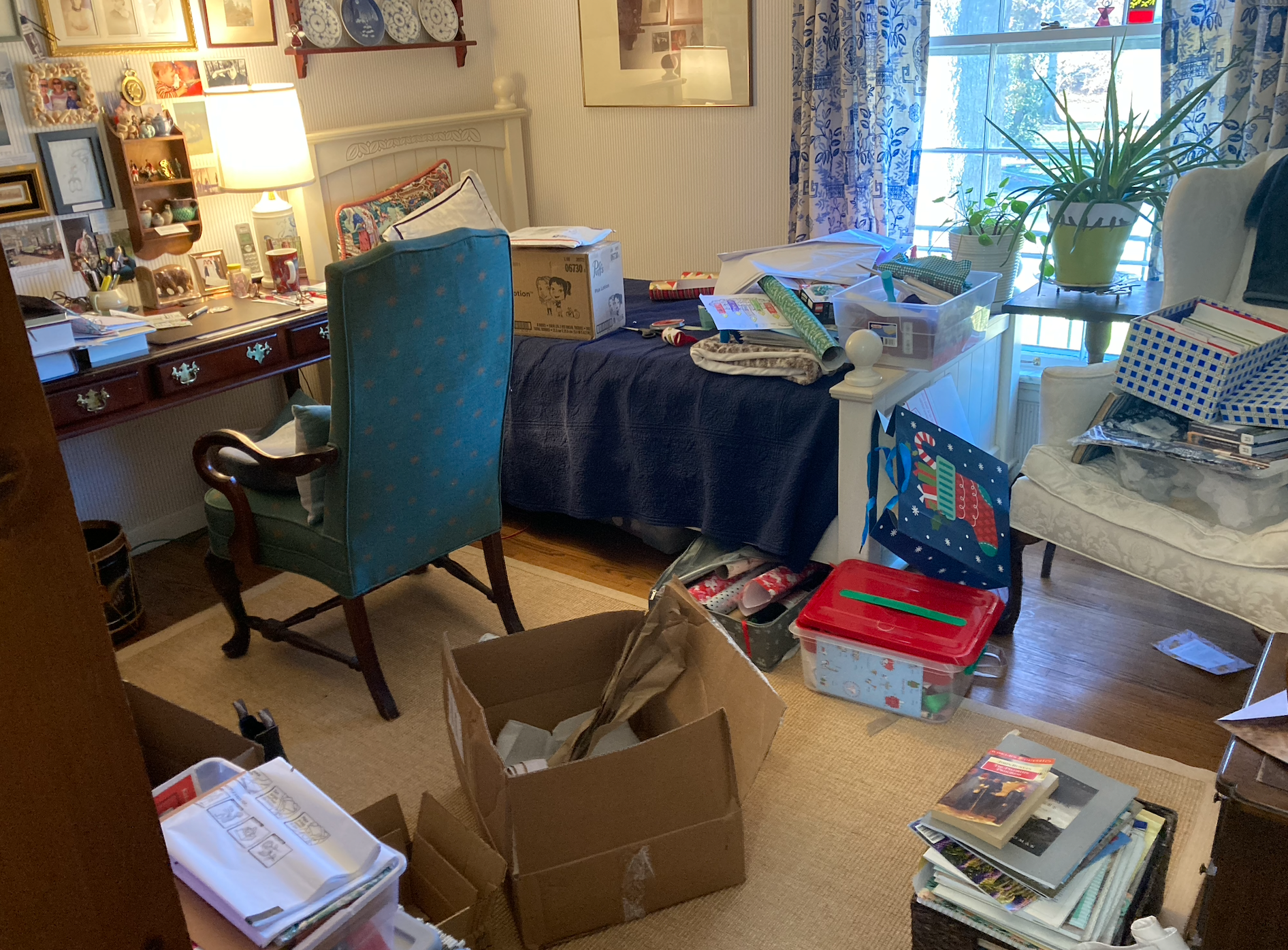 It is that time of year when everything is in a state of chaos, most particularly my office. Good grief, Charlie Brown! Although you cannot tell, I am making progress. I mailed two out-of-town packages and wrote my Christmas letter!
