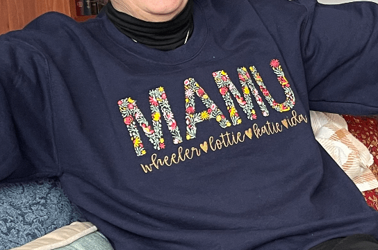Daughter #3 made this updated sweatshirt for me (Wheeler, Lottie, Katie, and Ida), which I think is pretty great, don’t you?