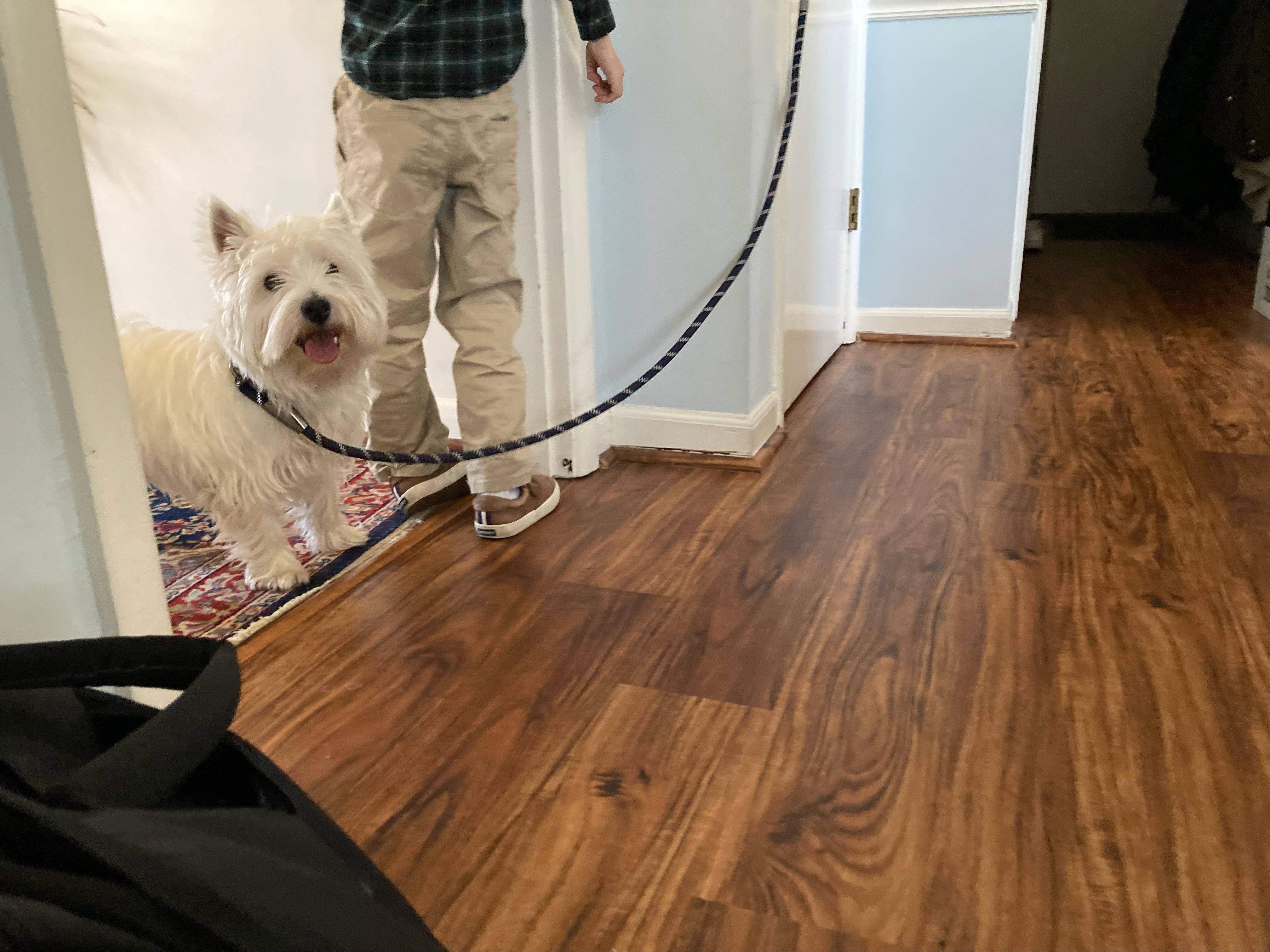 I made a new breakfast casserole which incorporated bagels, eggs, bacon, cheese. The consensus was positive, so I will make it again. The twins had fun frolicking with Mr. Smith, whom they had not seen in several weeks. “Smitty!”