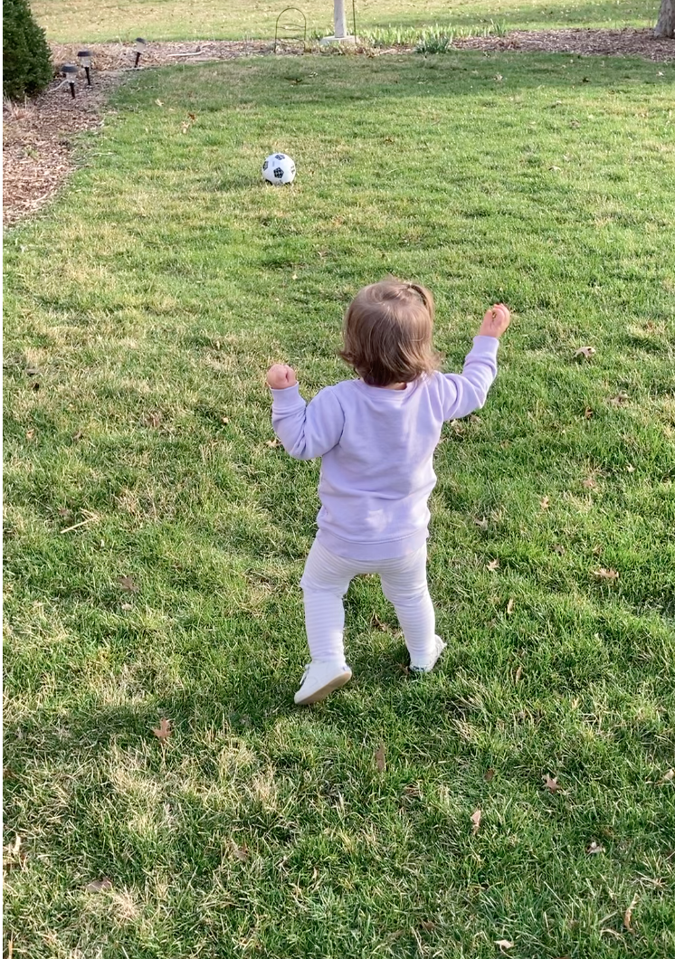 Daughter #1 will no doubt enjoy spending quality time with Katie and chasing Ida around–did I mention that Ida is now walking/playing soccer? The boy says, “Get out the cones! Agility drills start now!”
