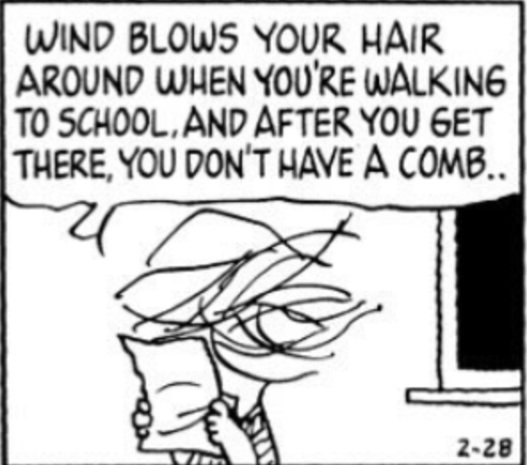 It has been a very windy winter and now it is a very windy spring. And by that, I mean very windy. I am tired of the wind rattling around the corners of my house. And there is not enough hairspray in the world to handle some very bad hair days. I so relate to Peppermint Patty: